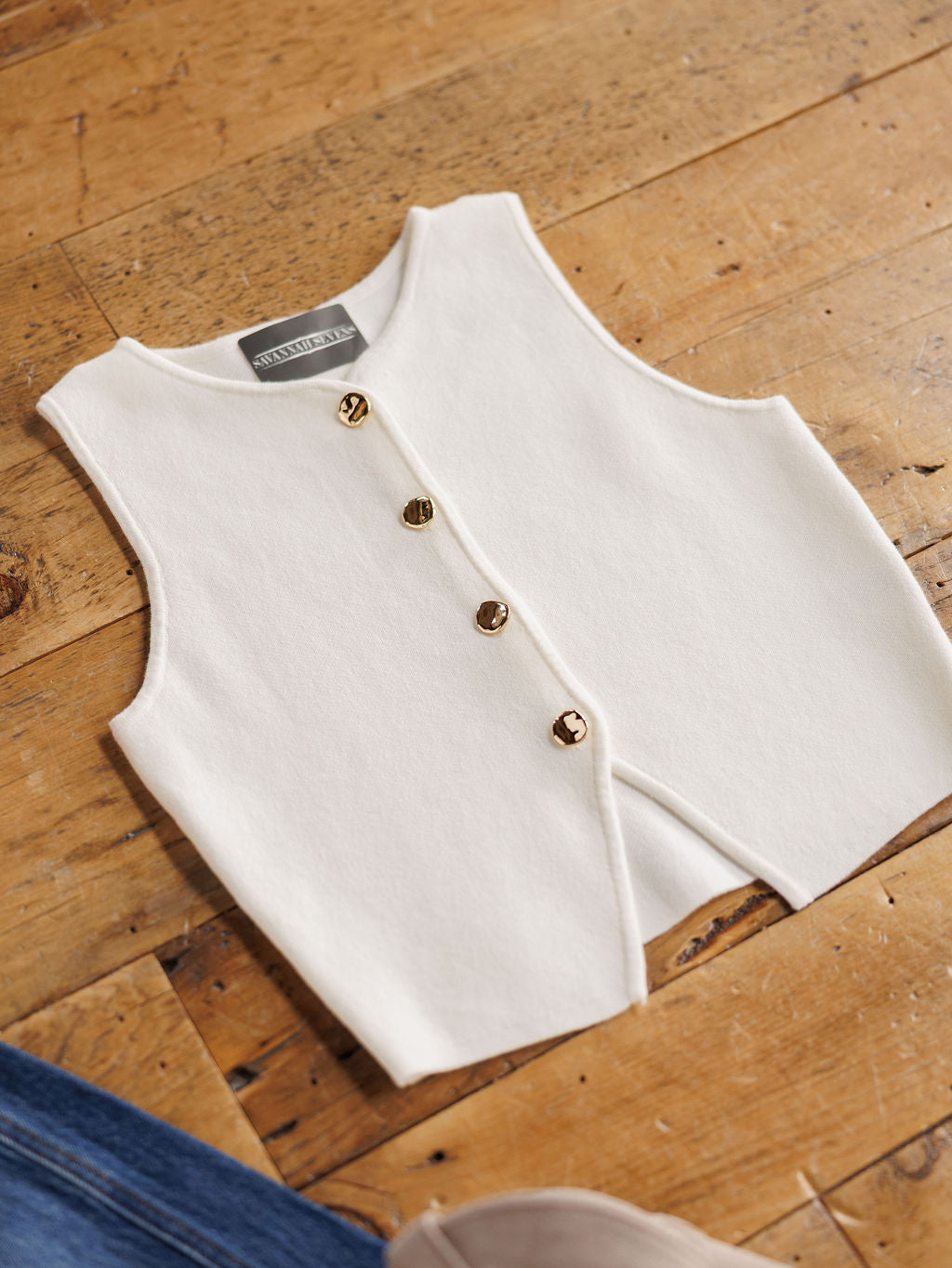 White sleeveless crop top.
