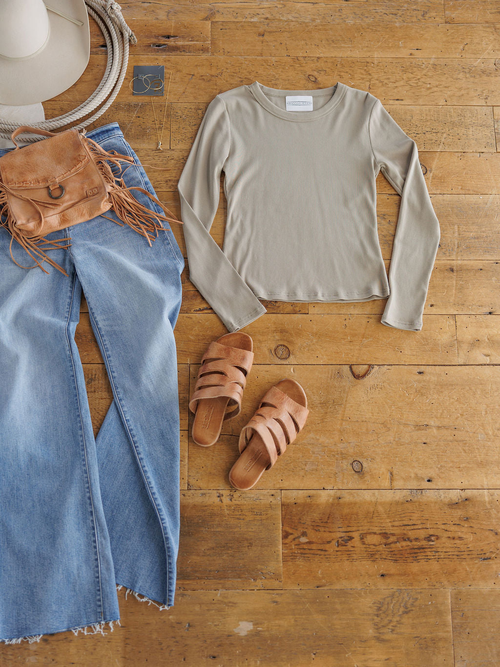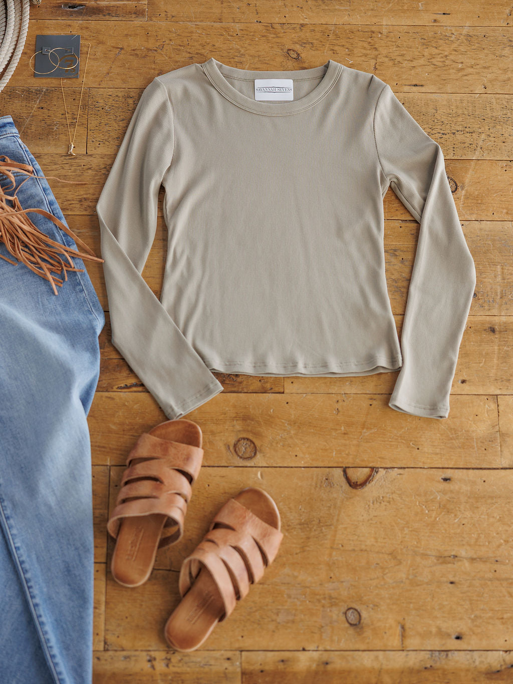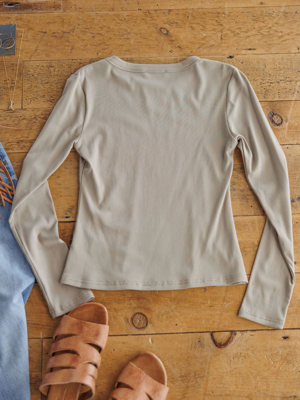 Sandstone ribbed long sleeve top.