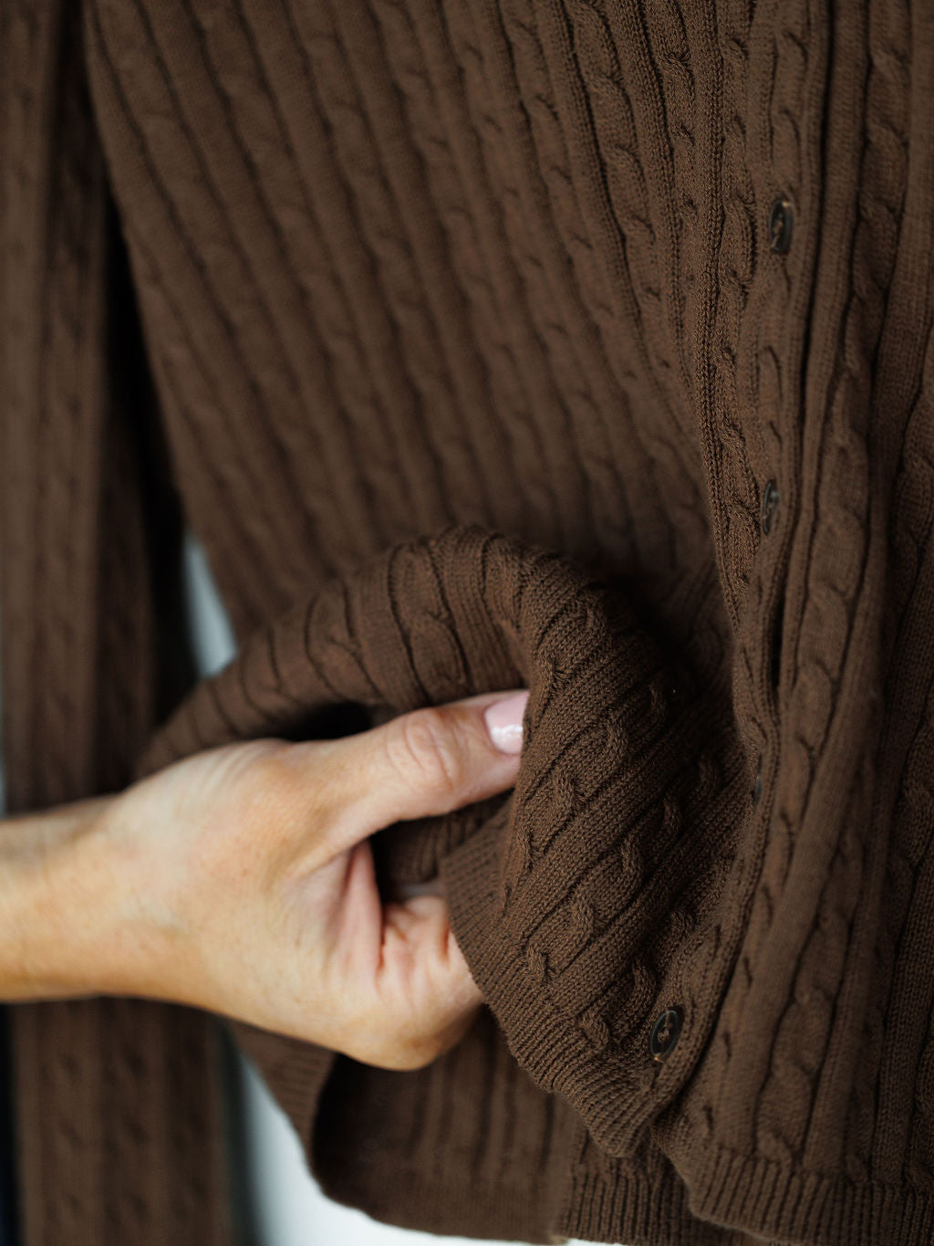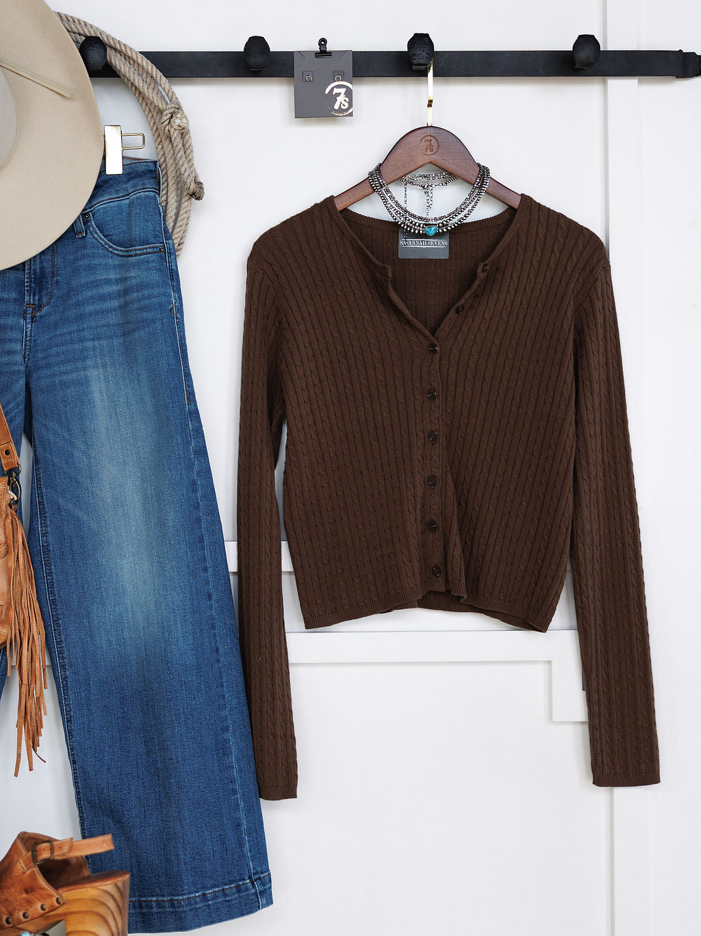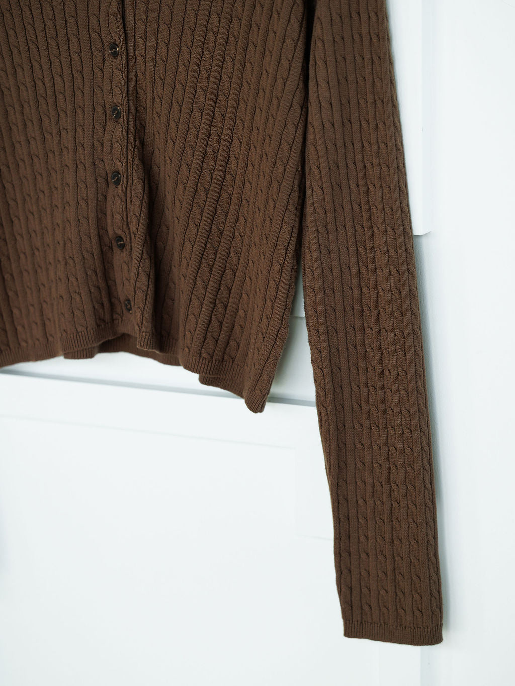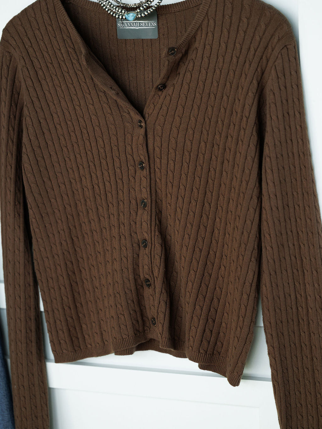 Chocolate long sleeve button up top.