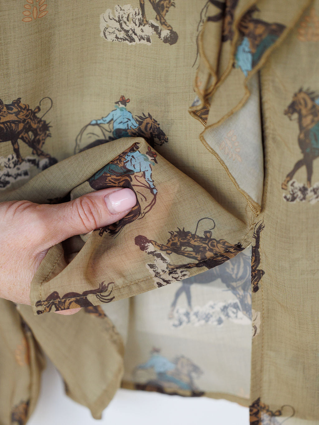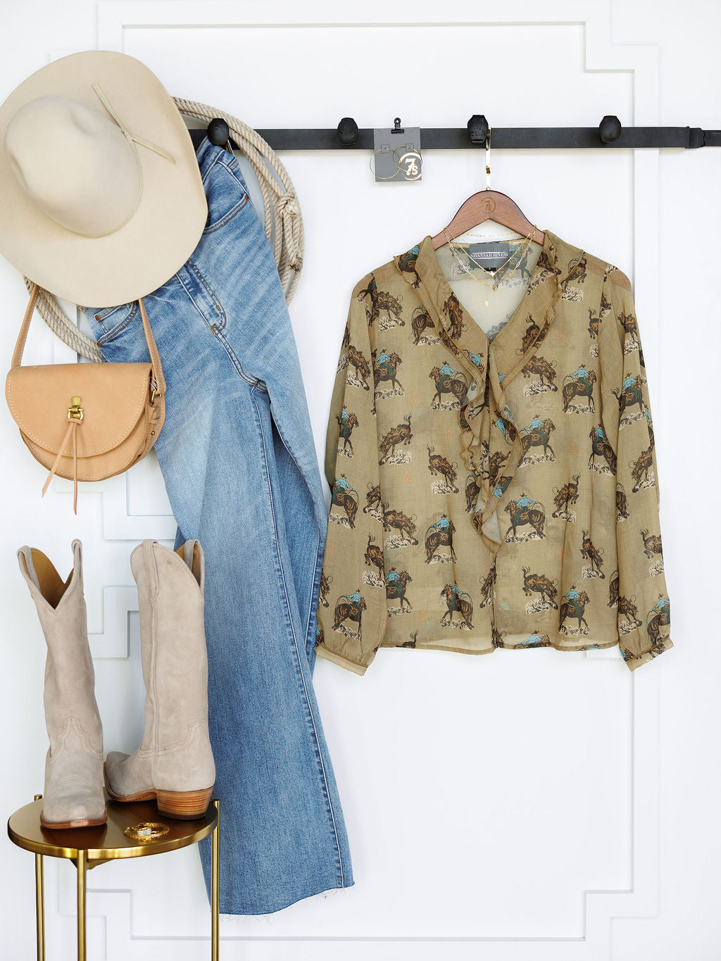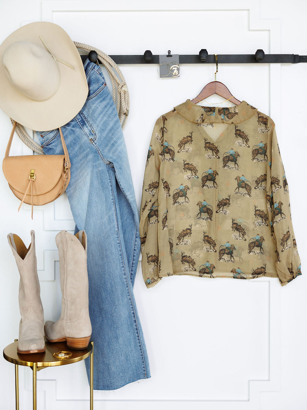 Retro western print throughout.
