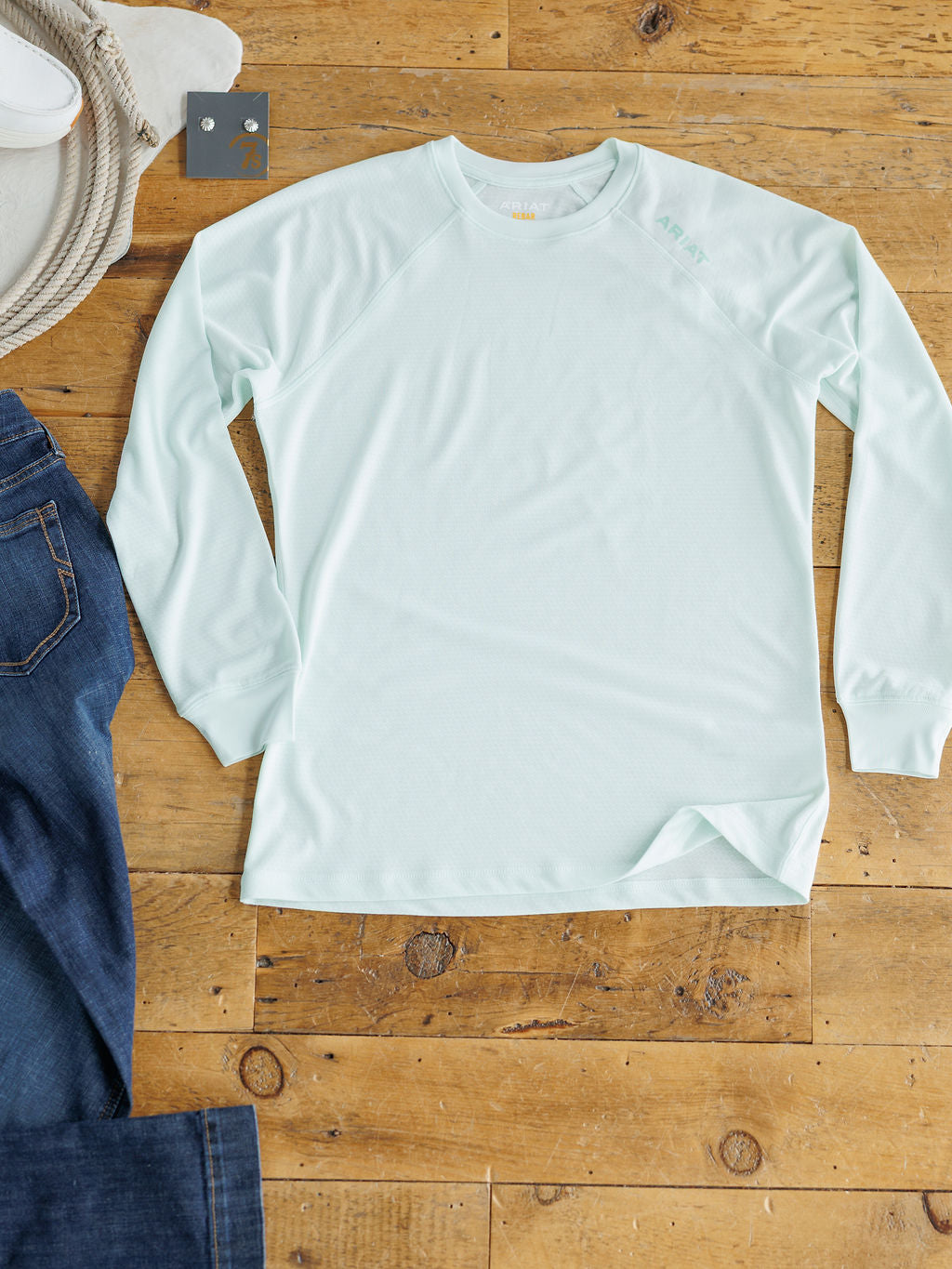 • Rebar Muted seafoam mesh long sleeve top.