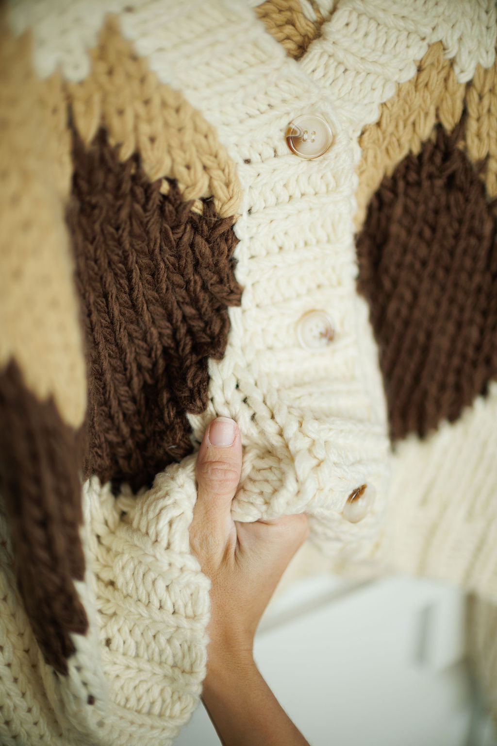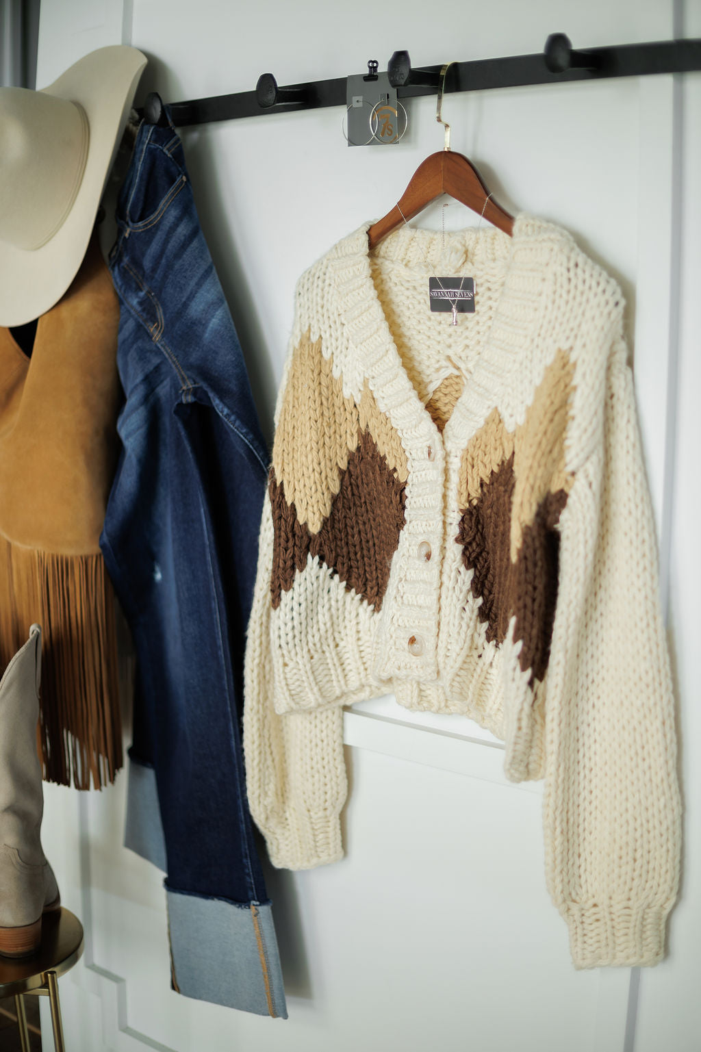 Cream knit button up cardigan.