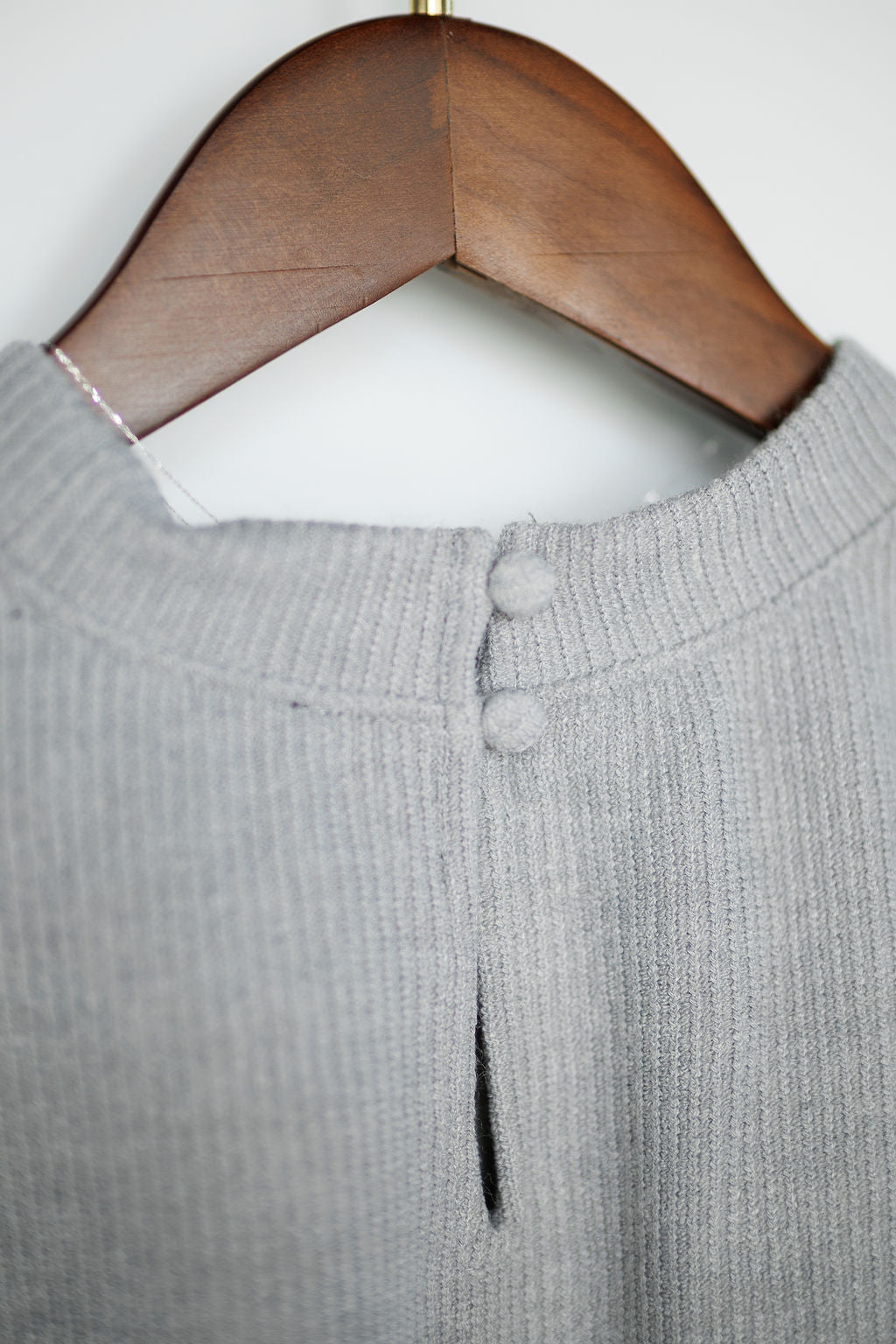 Keyhole back with button closure.