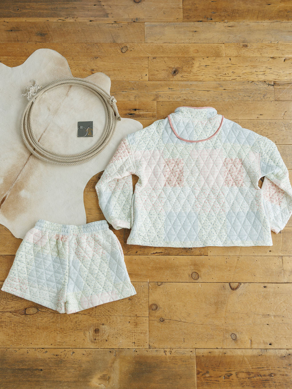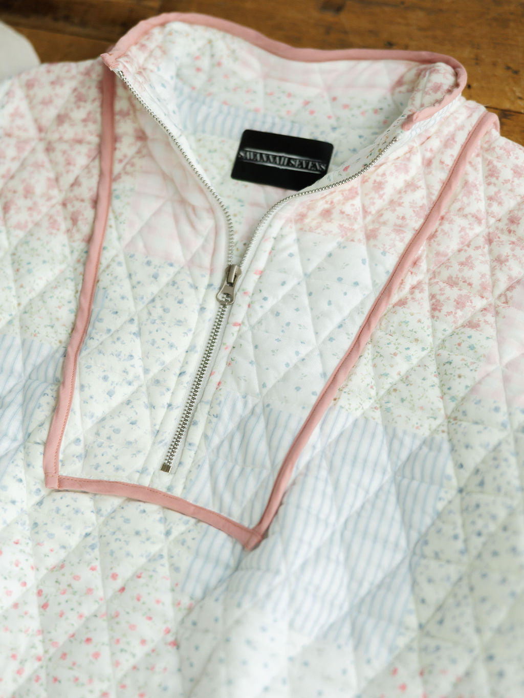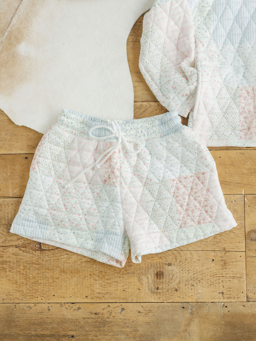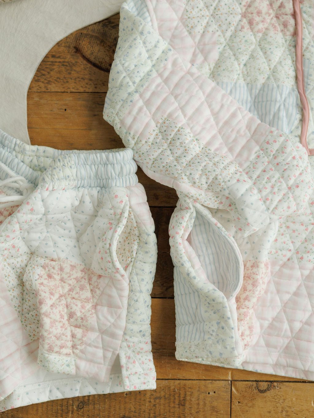 • Quilted patchwork design.
