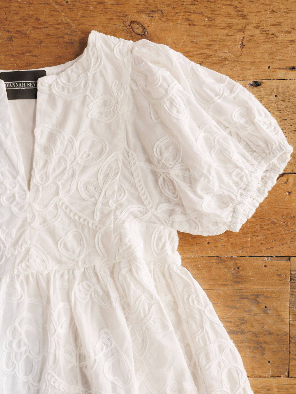 Unique embroidered floral detail throughout.
