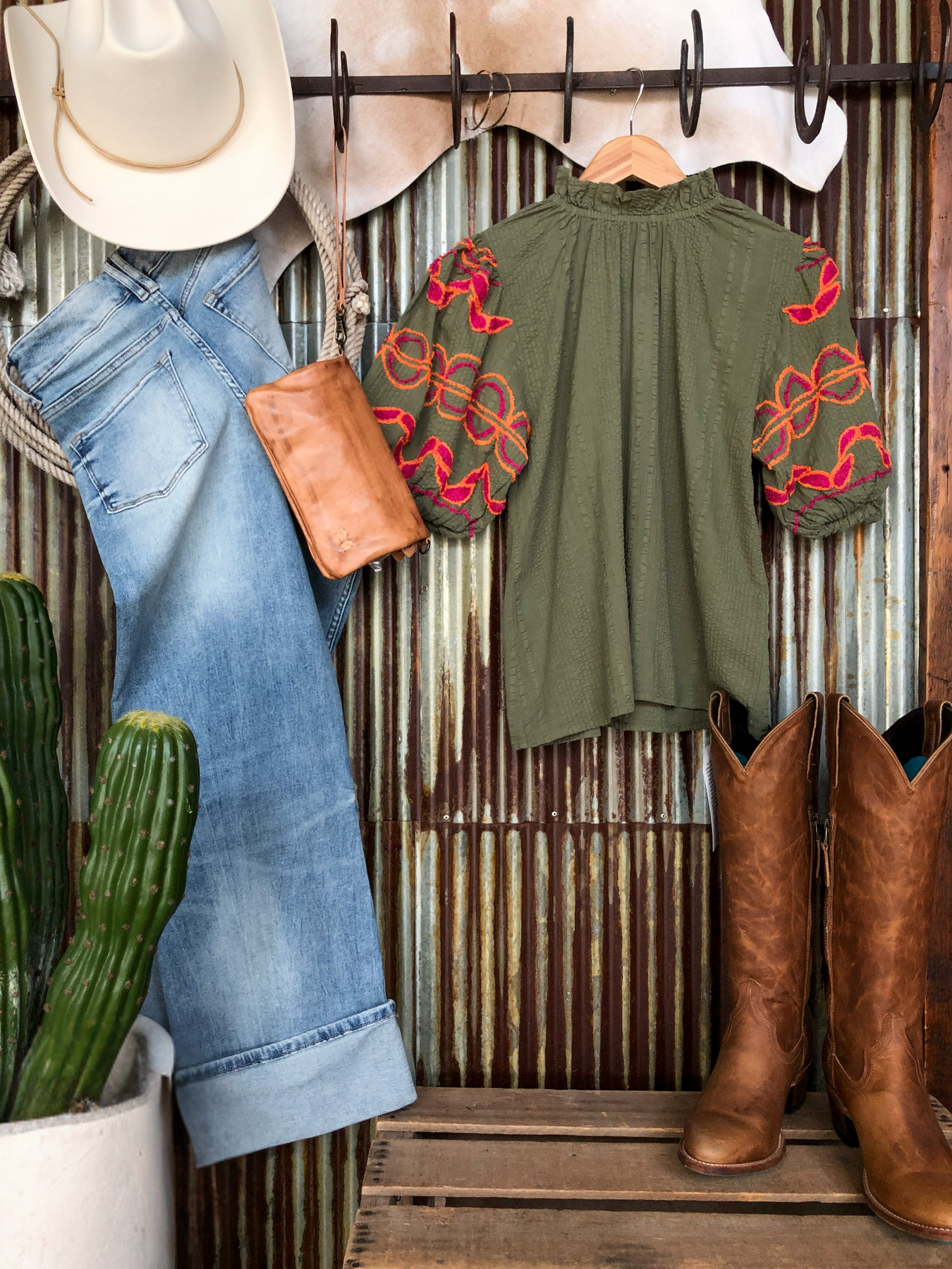 Runs true to size through the shoulders and chest with a relaxed bodice.