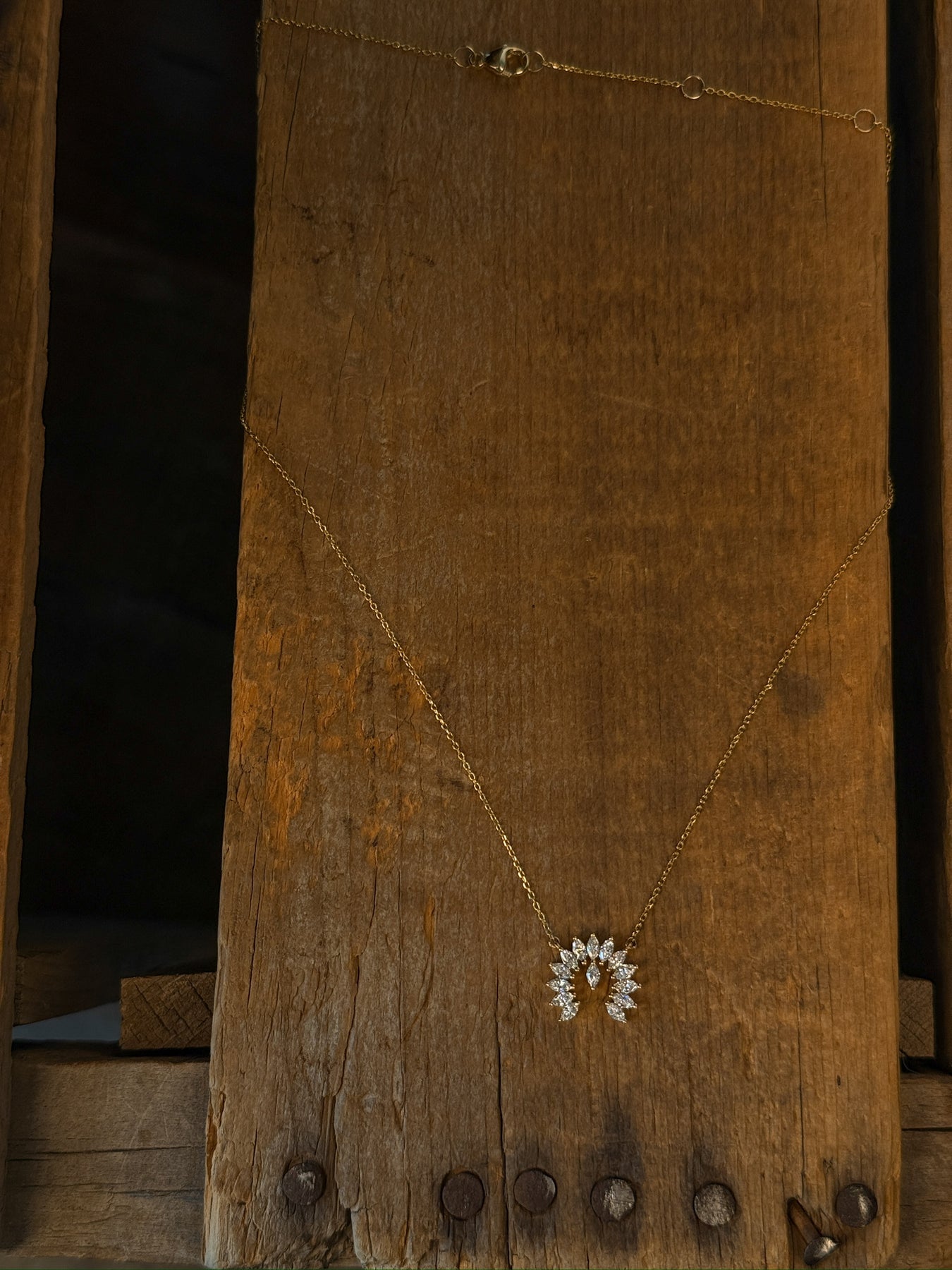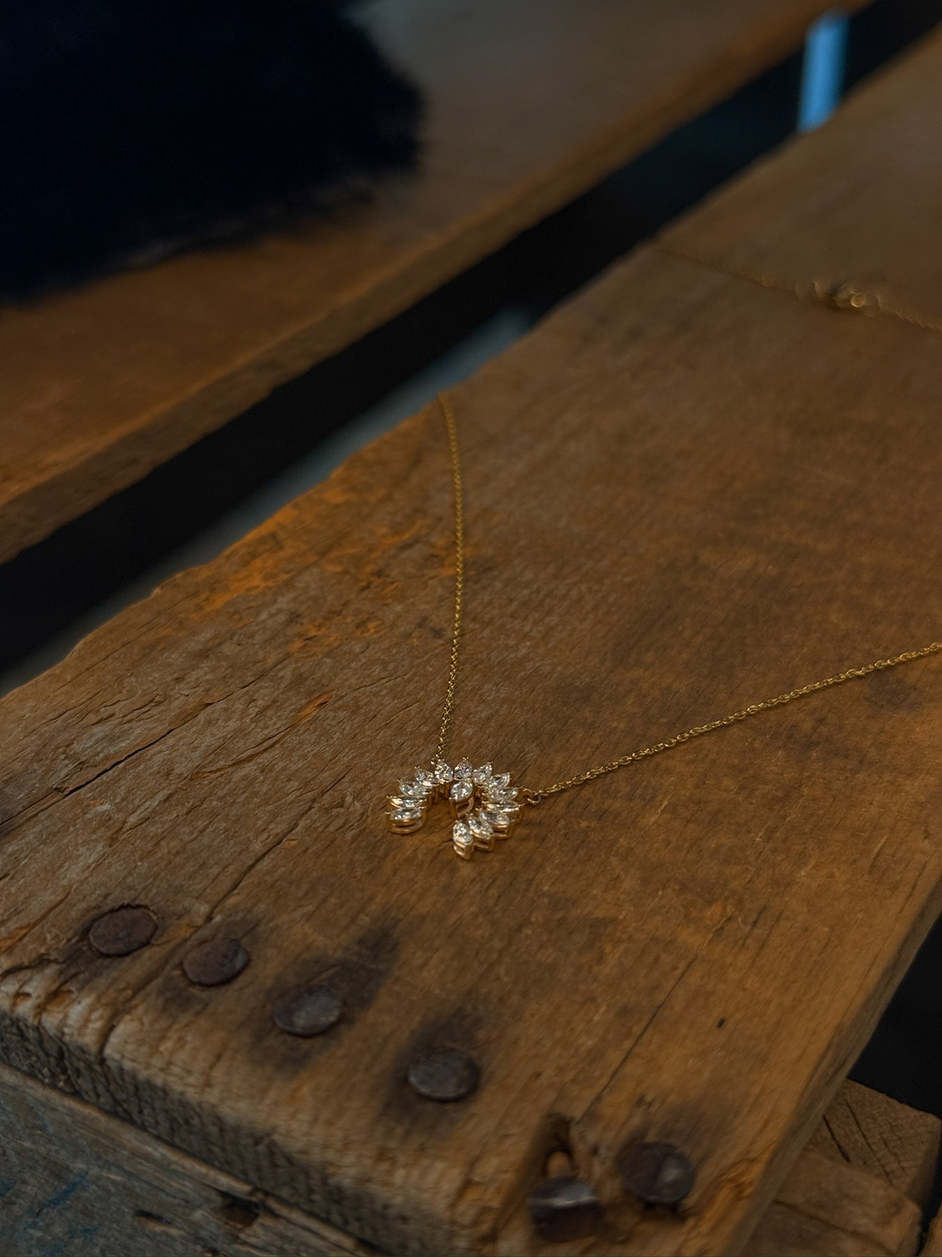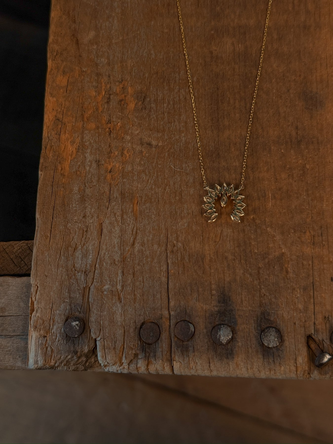 - 14K gold diamond naja necklace.