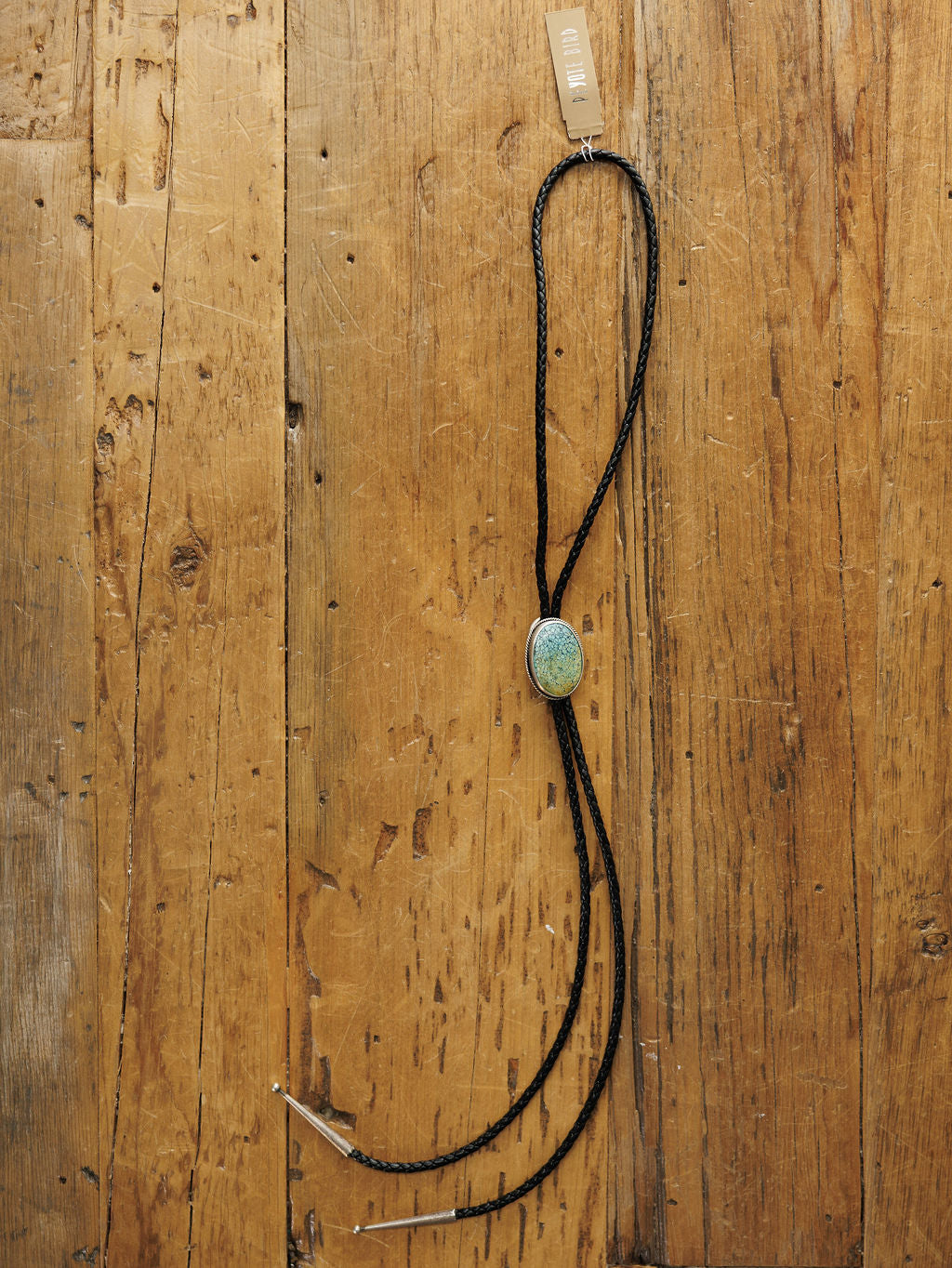 Handmade turquoise and leather bolo.