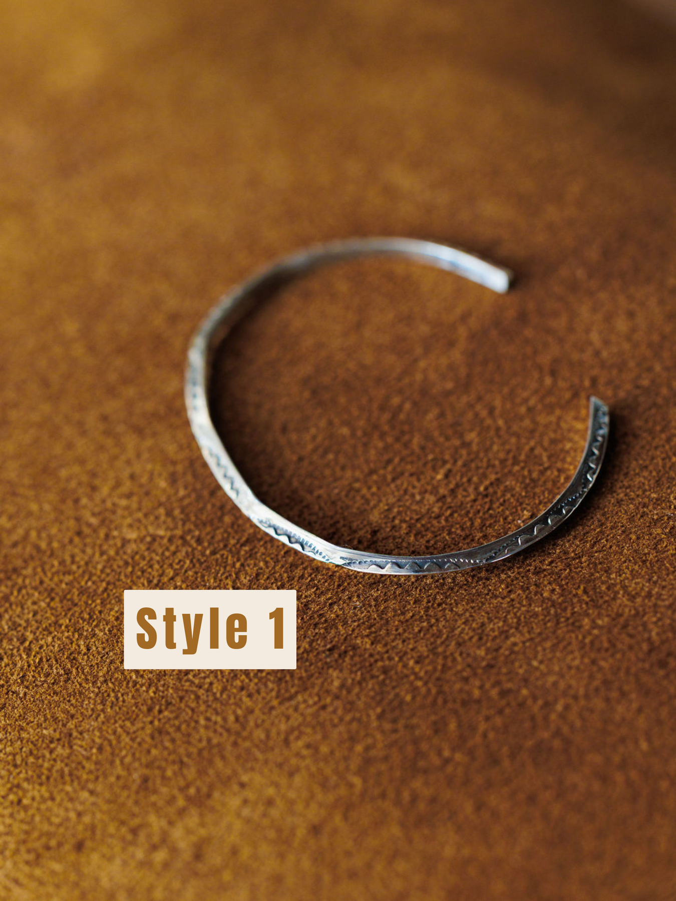 Southwest hand stamped design; design varies slightly with each cuff.