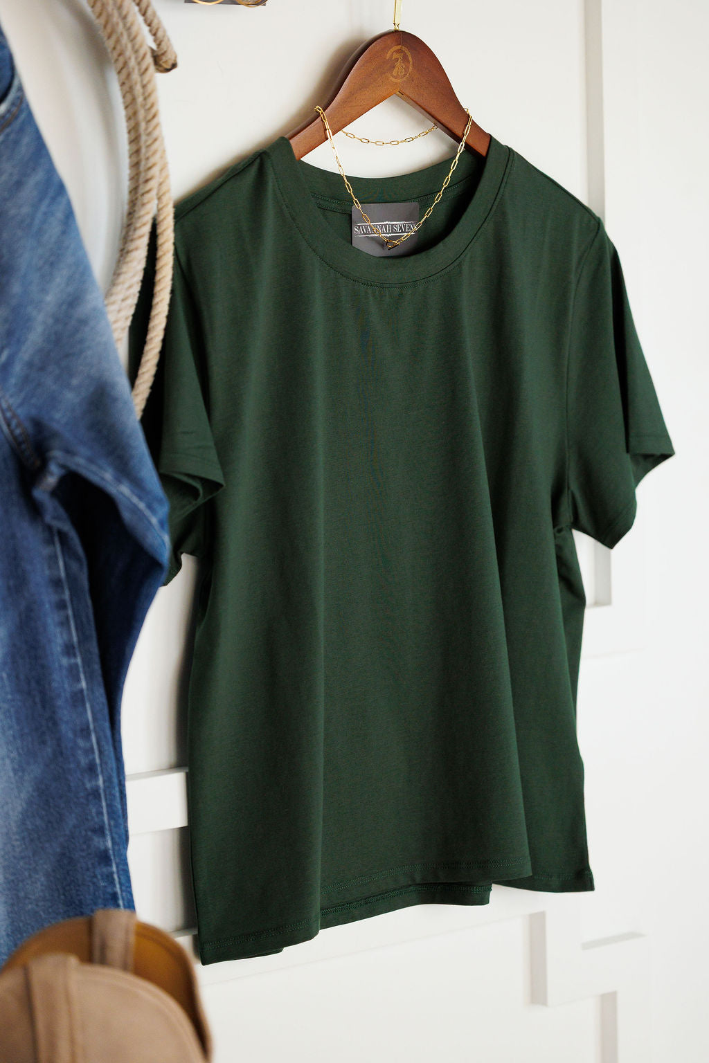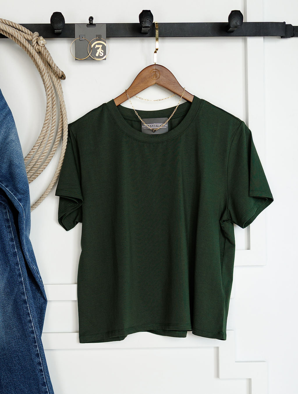 Deep emerald short sleeve top.