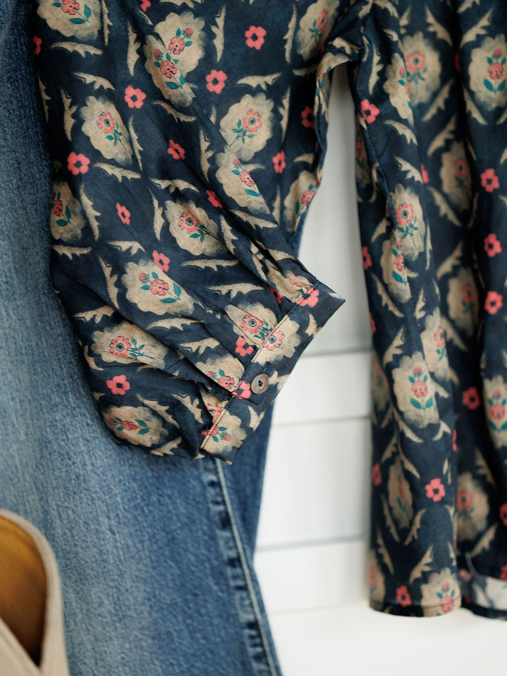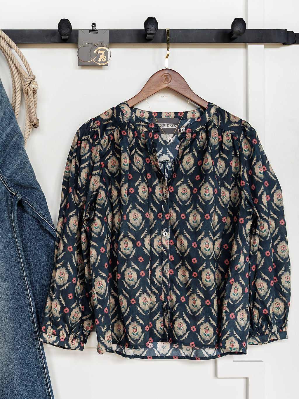Southwest floral long sleeve button up top.