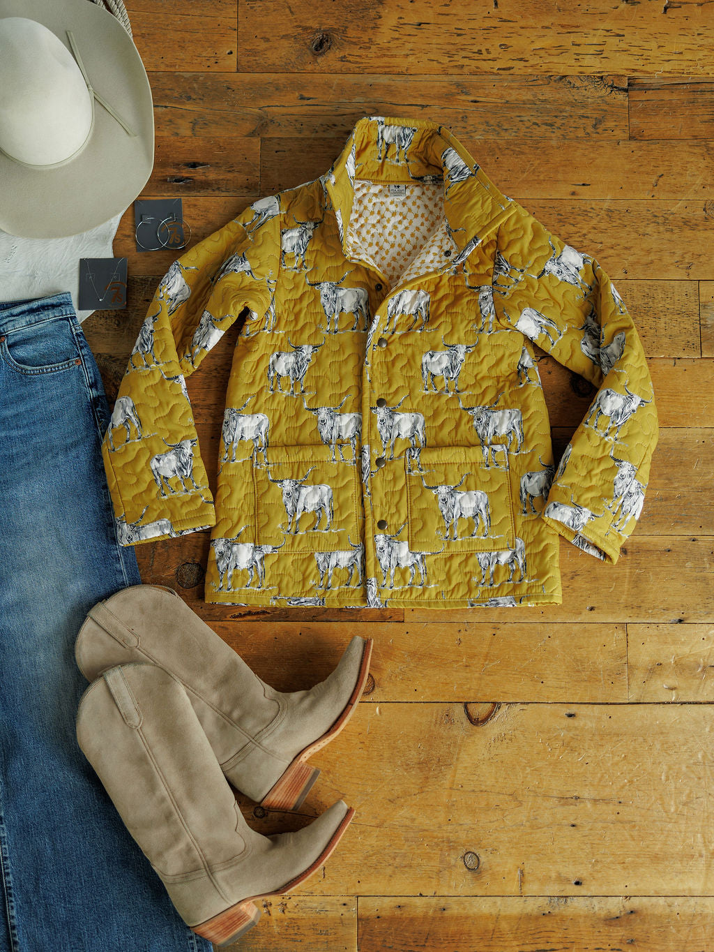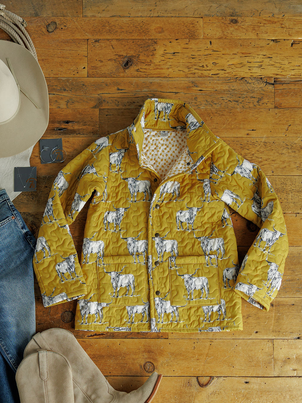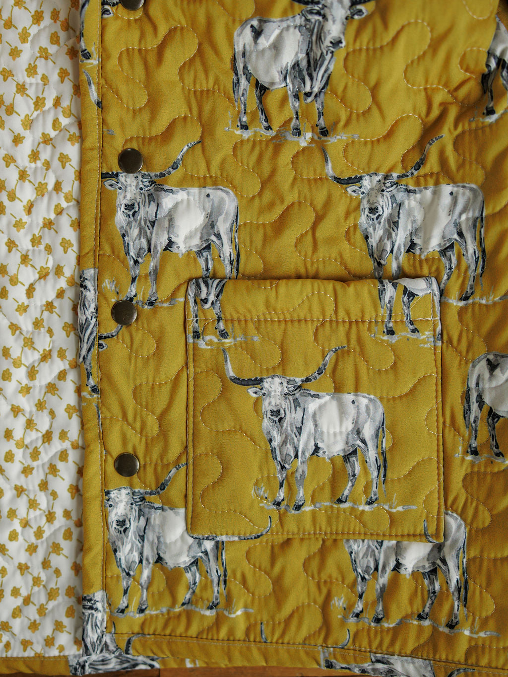 Mustard with longhorn and steer print throughout.