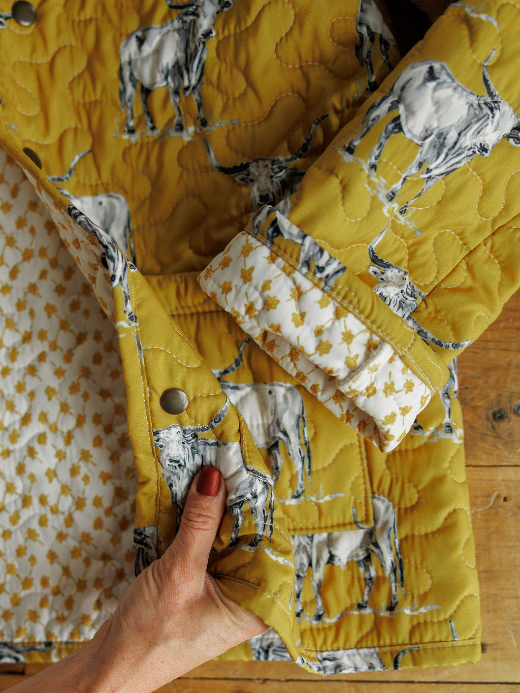 Handmade western quilted snap button barn jacket.