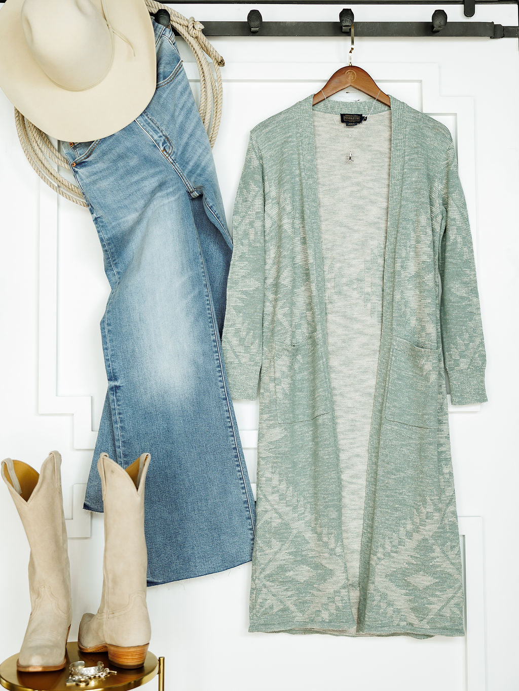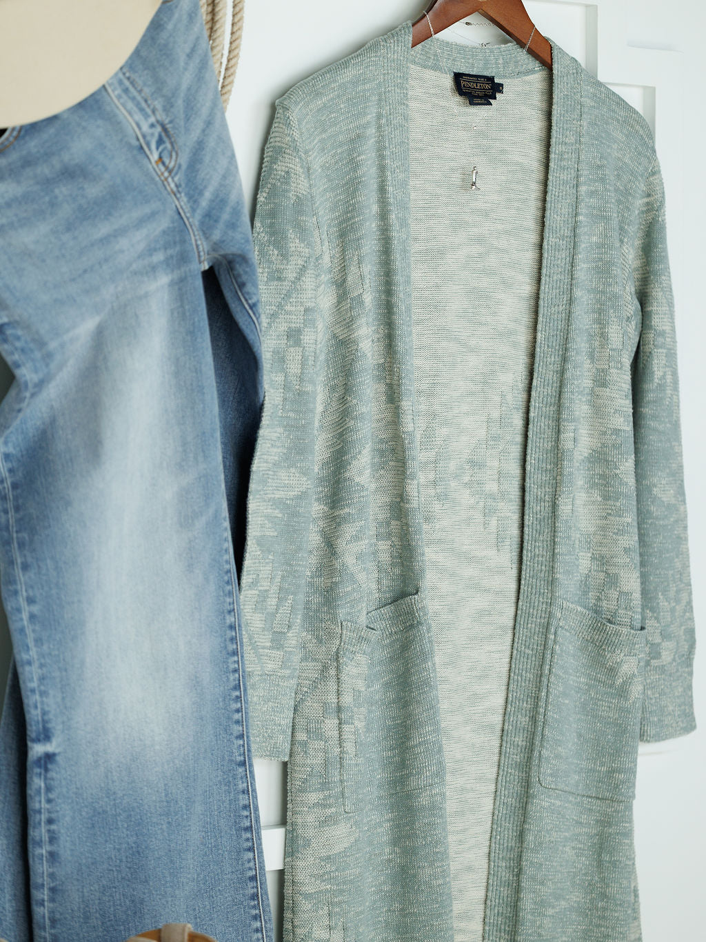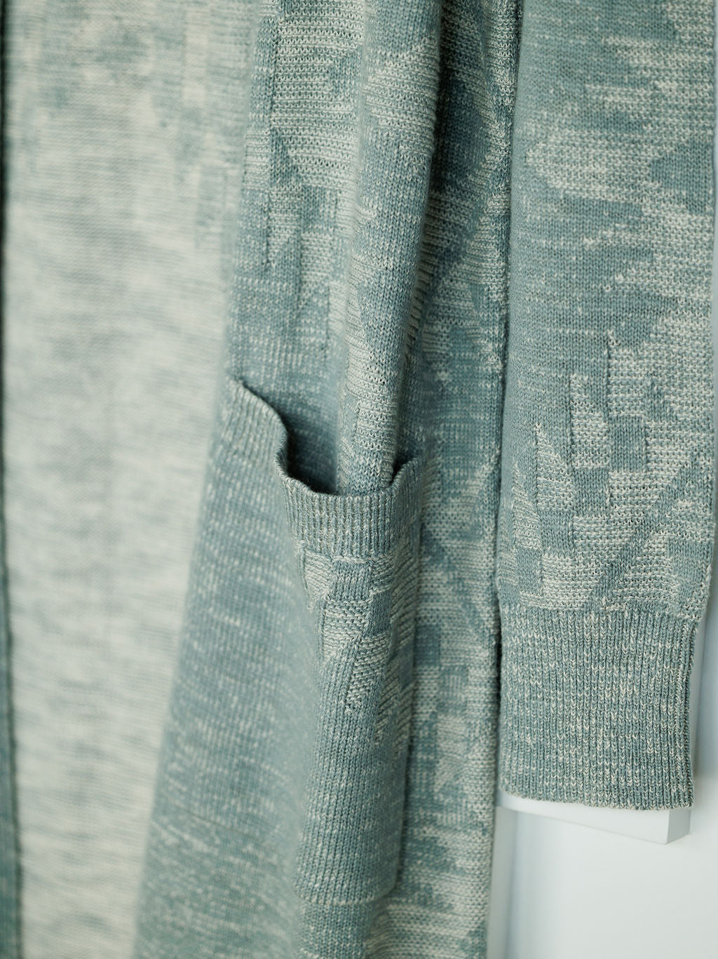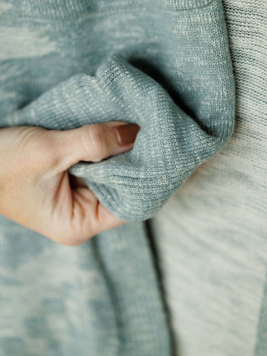 Blue sage and off-white soft woven knit fabric; 100% cotton.