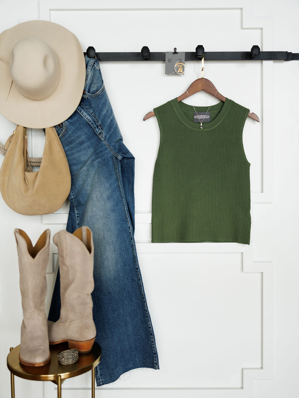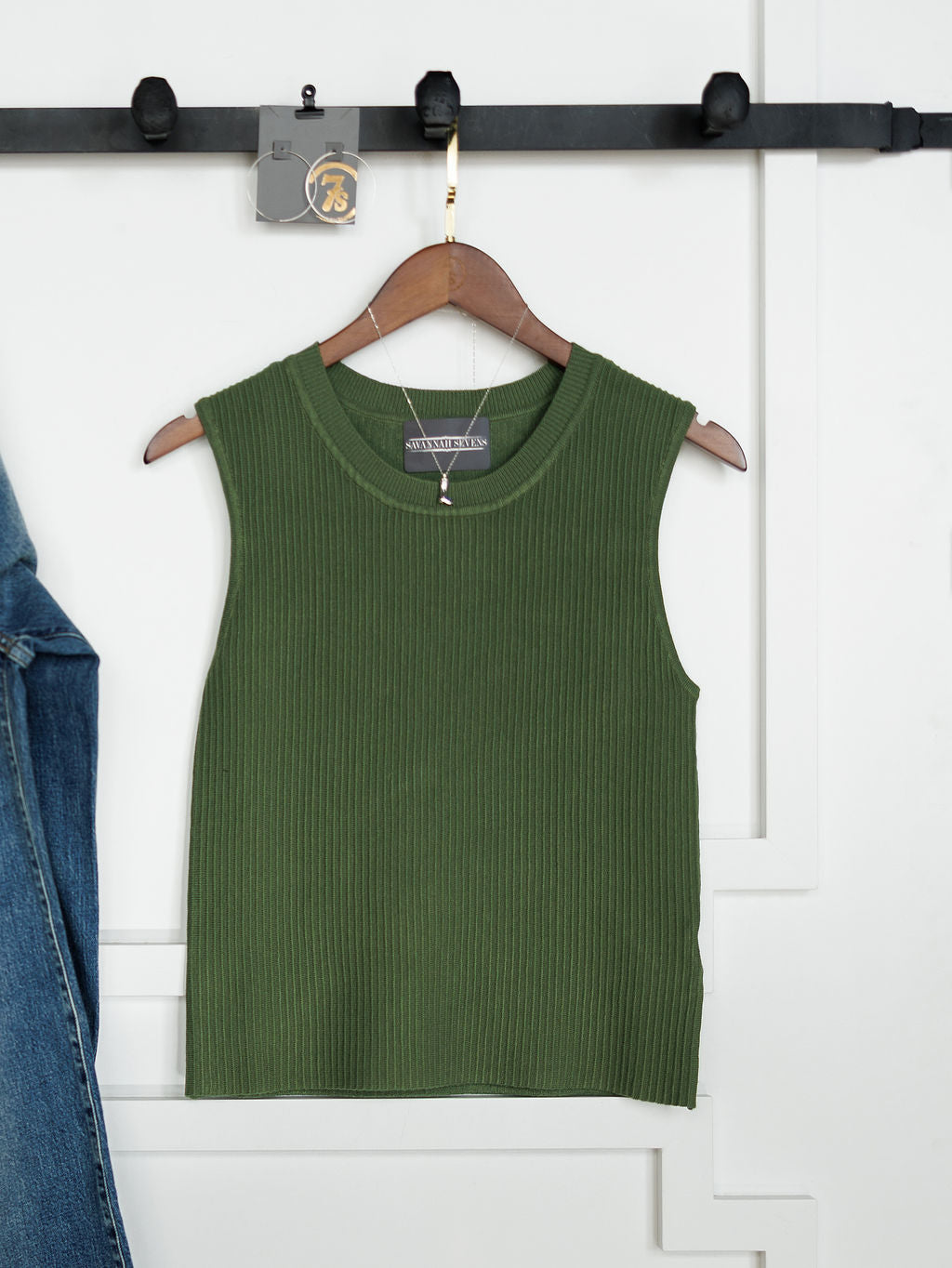 Fern green ribbed sleeveless top.