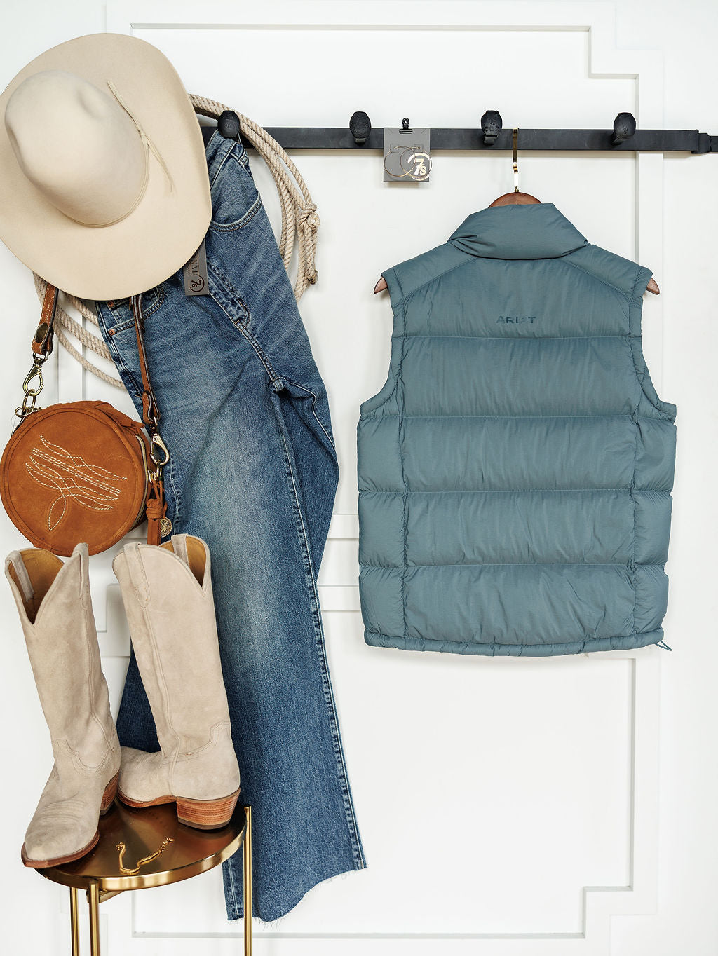 • Blue sage water repellent down puffer vest.