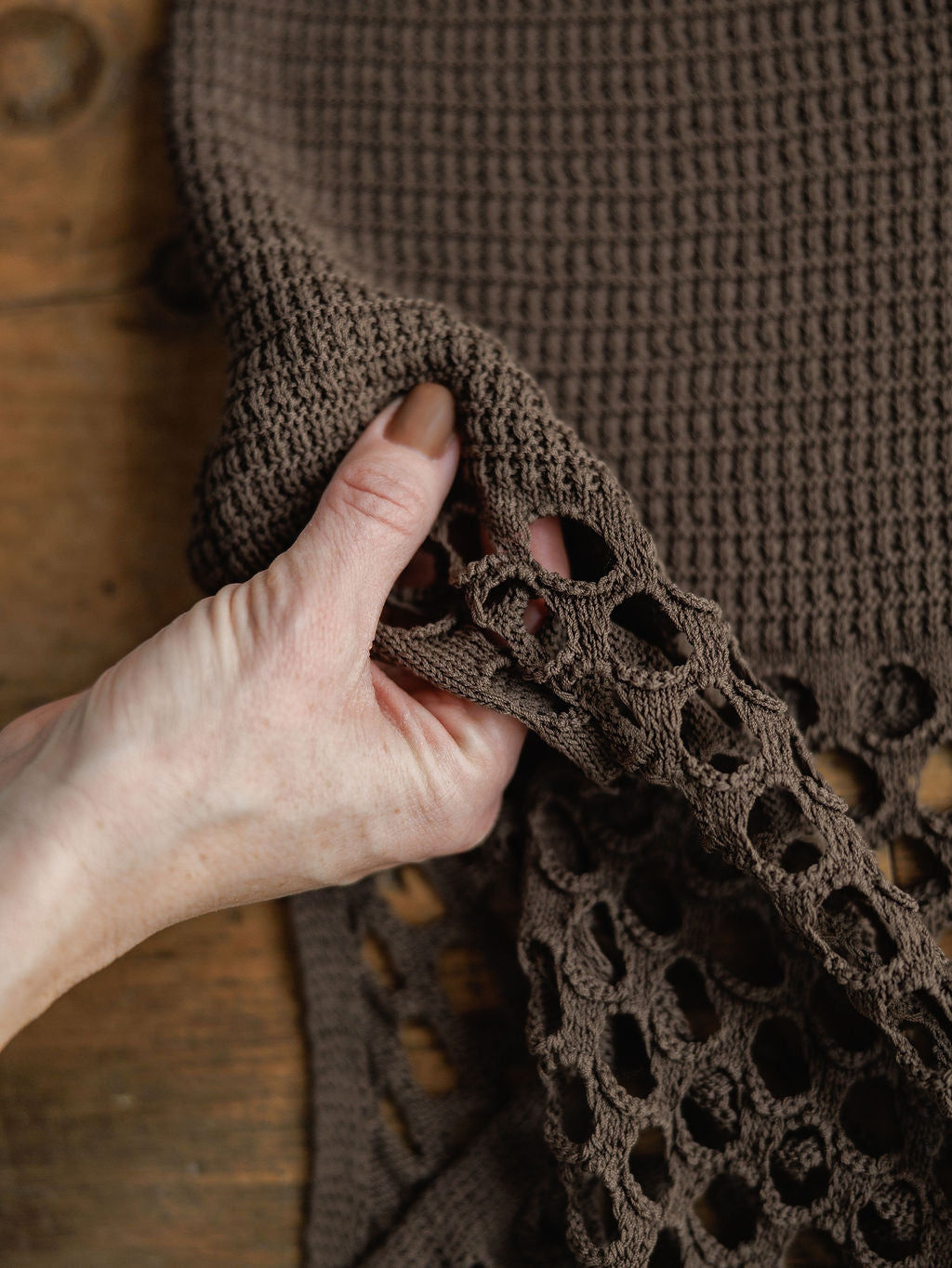 Multi pattern woven crochet fabric.
