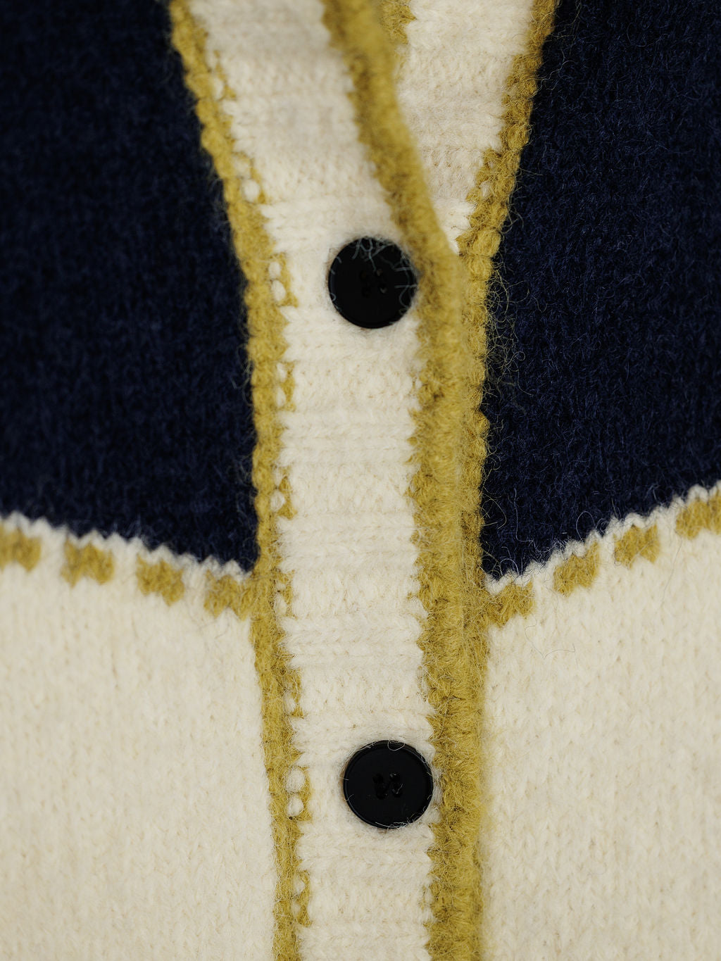 Midnight navy, cream, and chartreuse.
