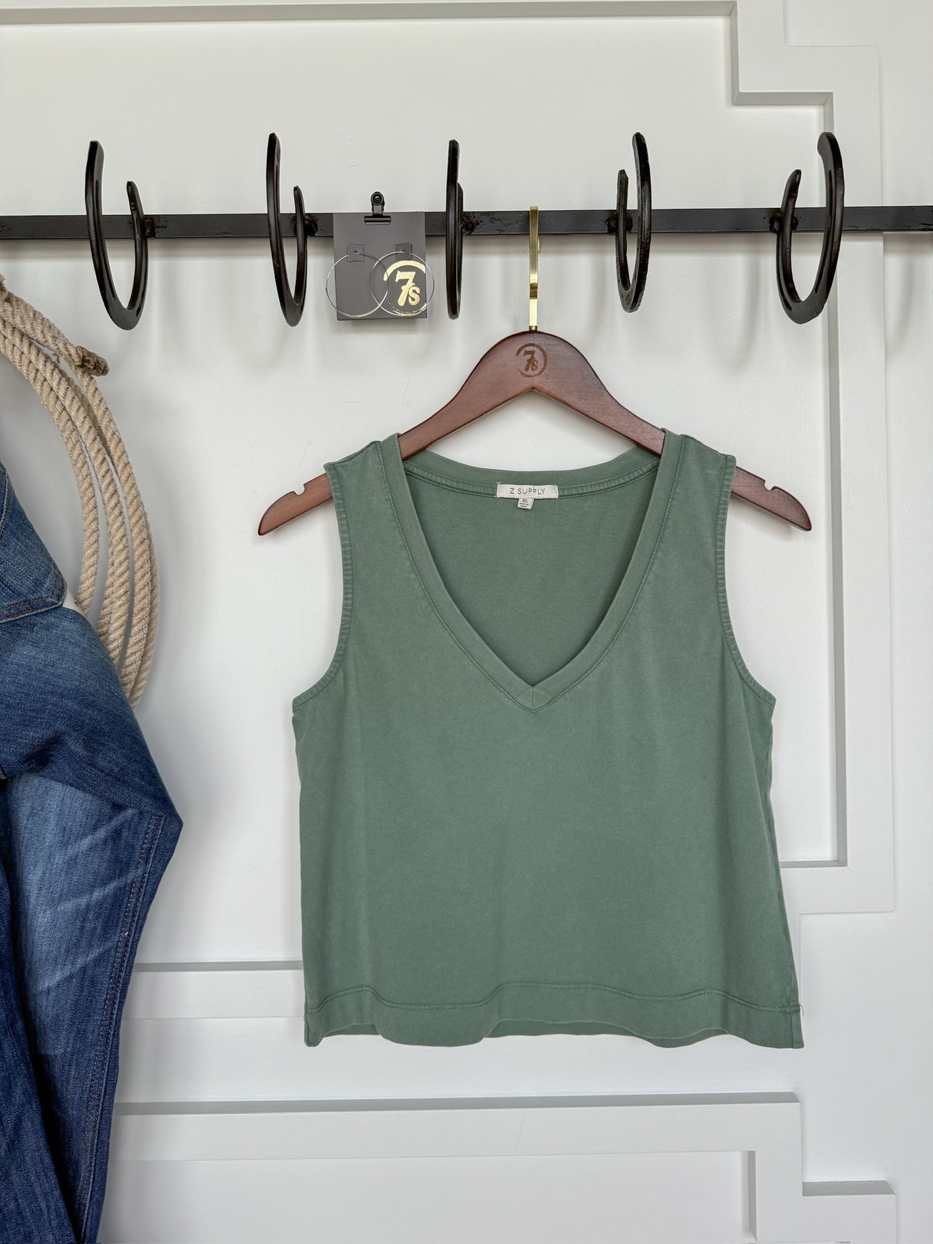 Washed teal sage crop tank.