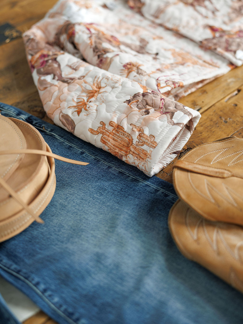 Handmade western quilted open cropped jacket.