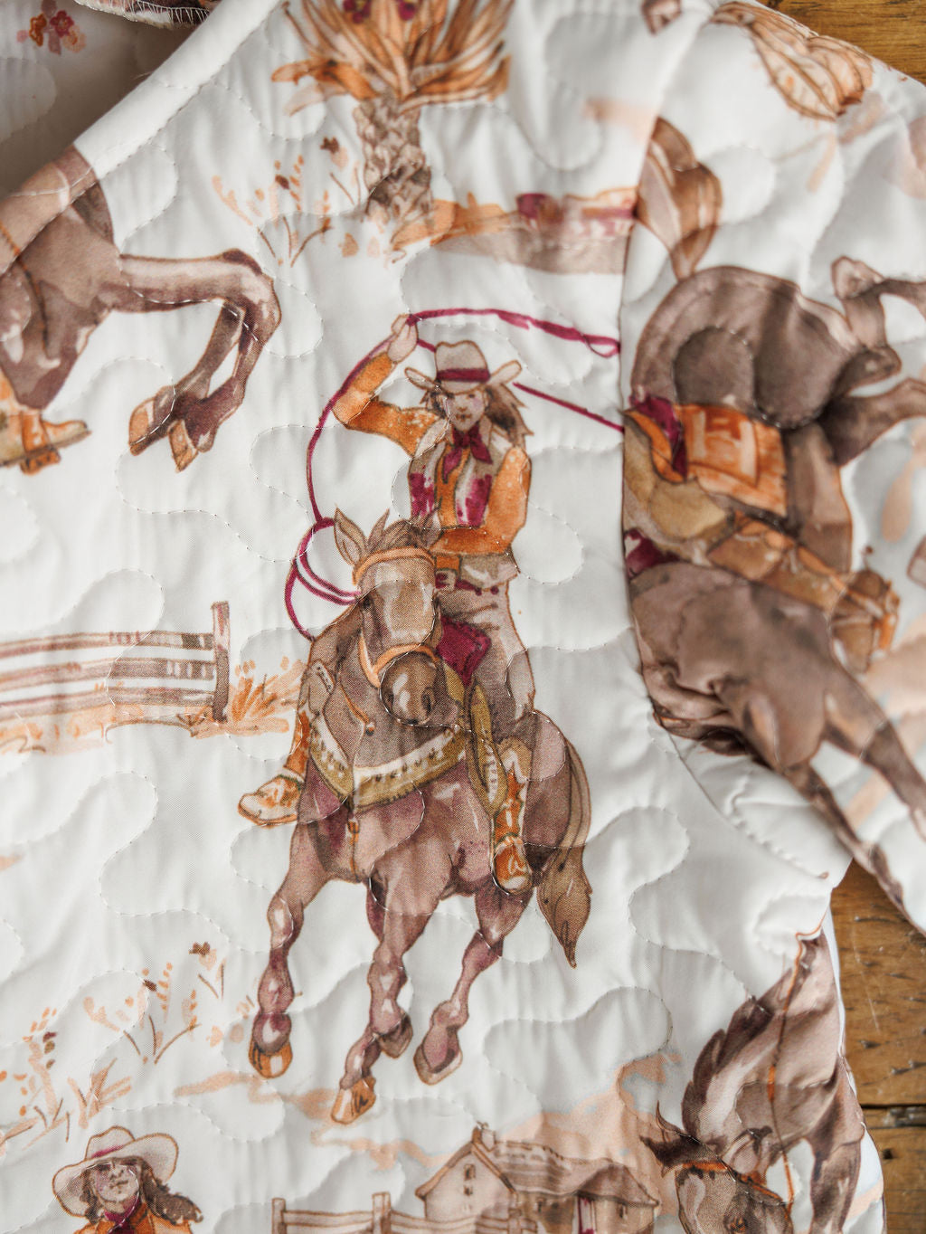 White with western sunset rodeo graphic print throughout.
