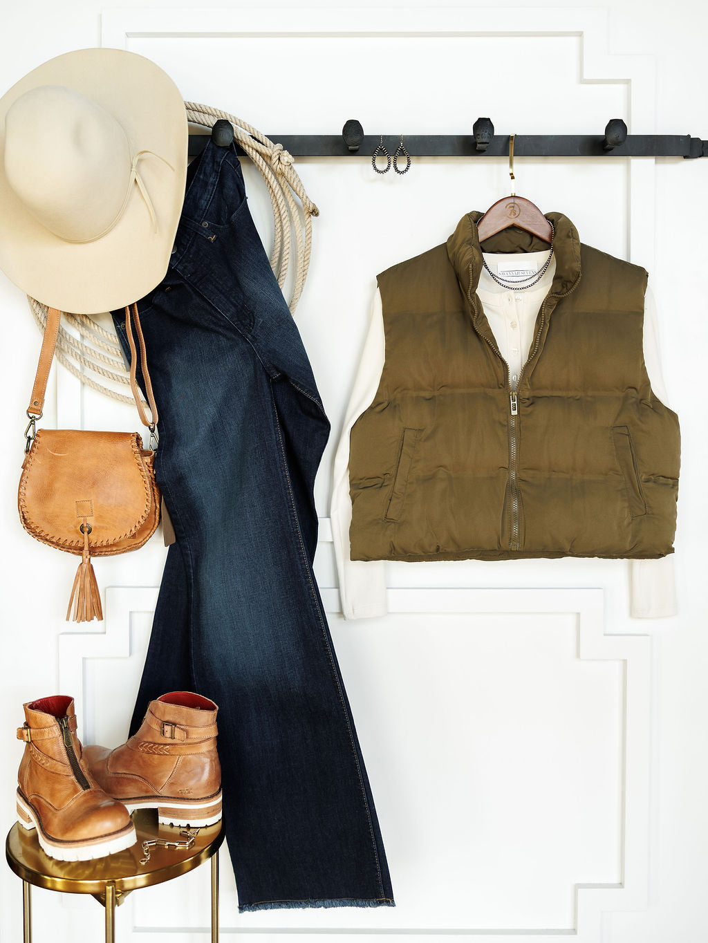 Longer crop fit; shows little to no skin if worn with perfect or high rise denim.