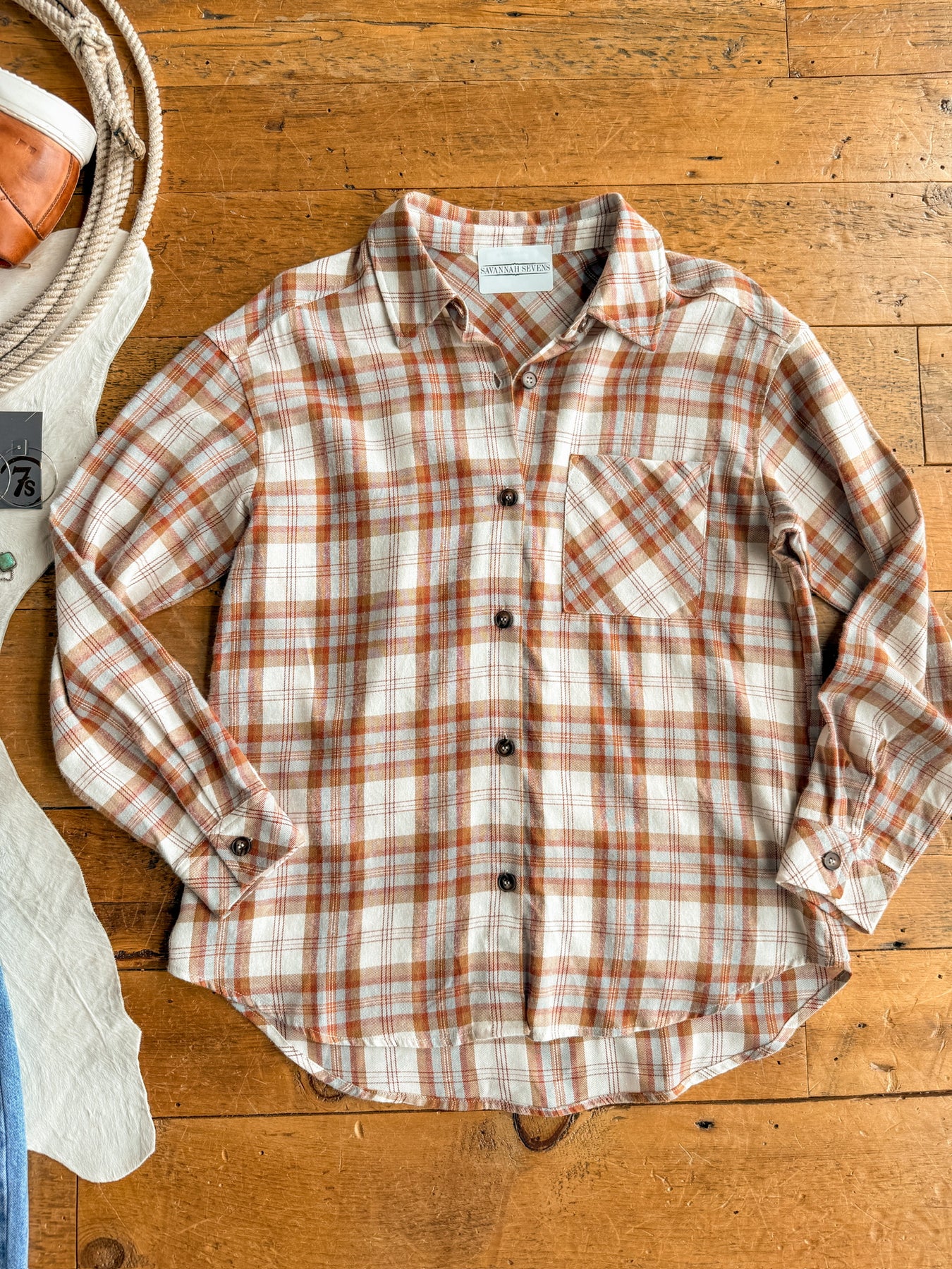 Plaid long sleeve button up flannel.