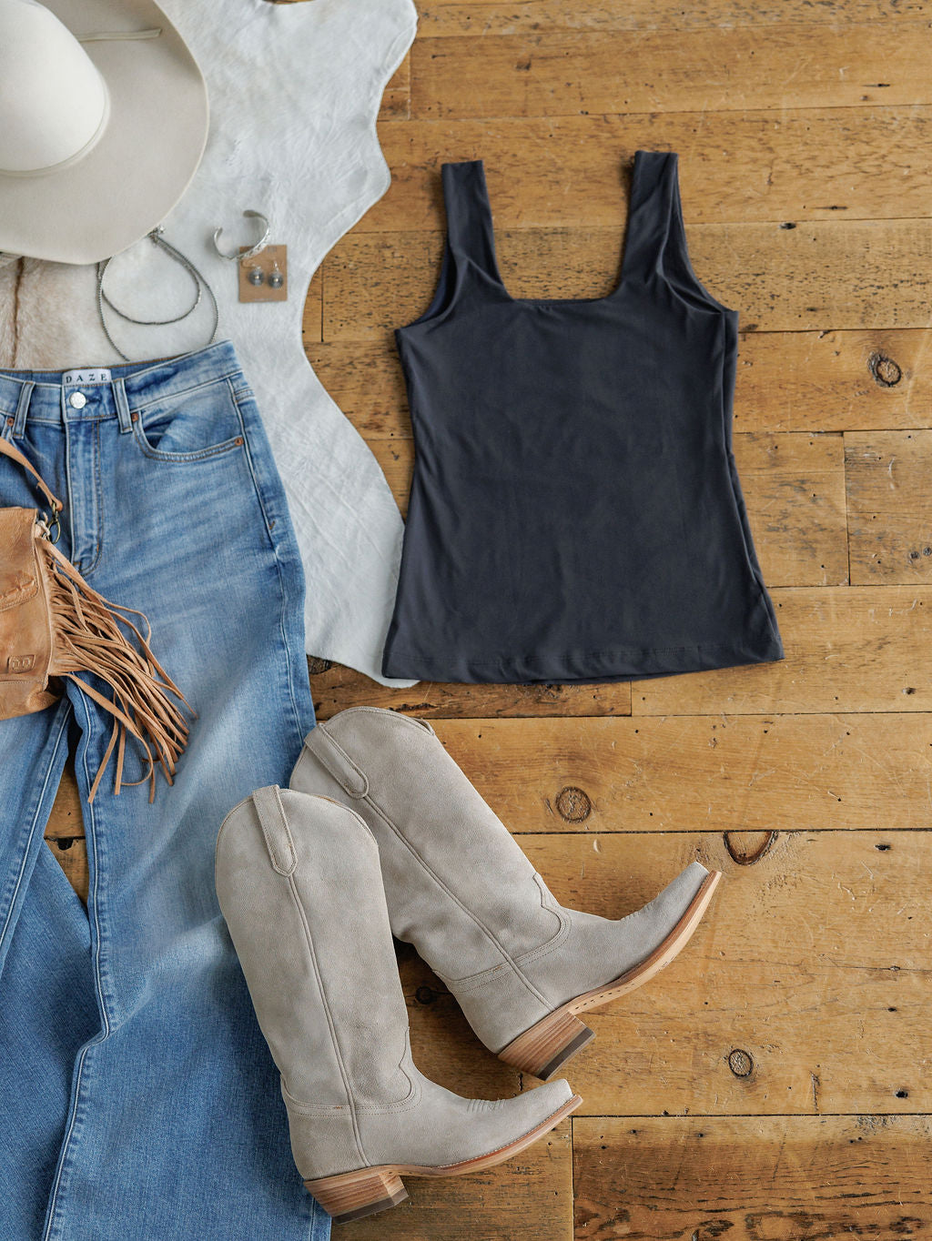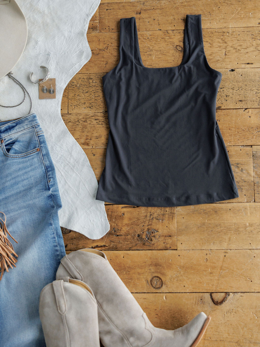 Slate square neck tank.