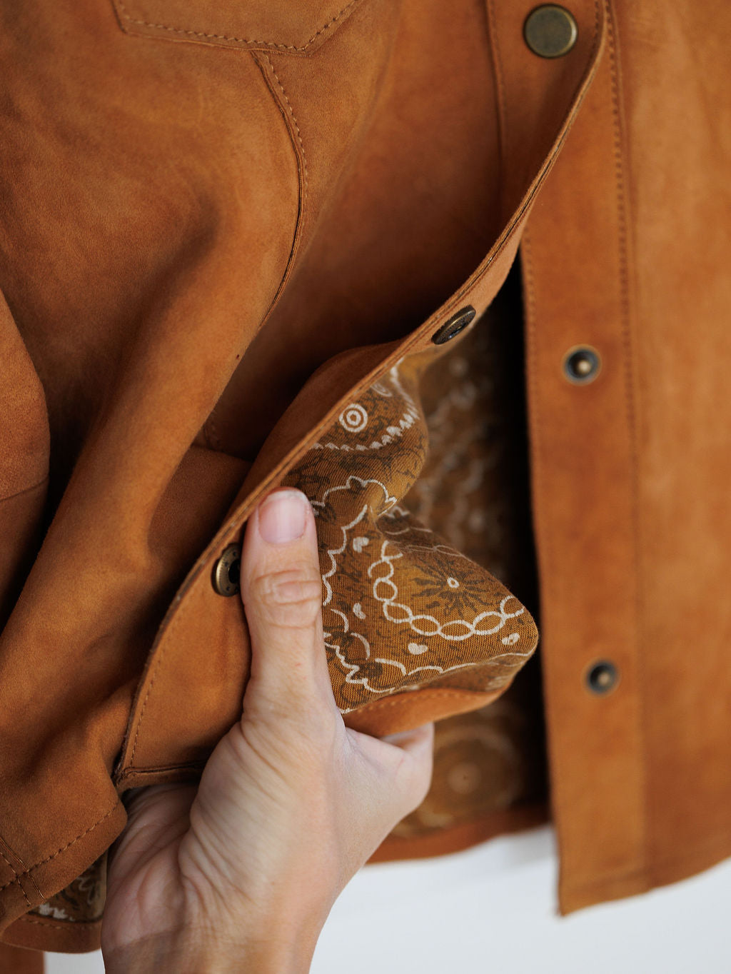 Genuine golden tan buttery soft suede leather.