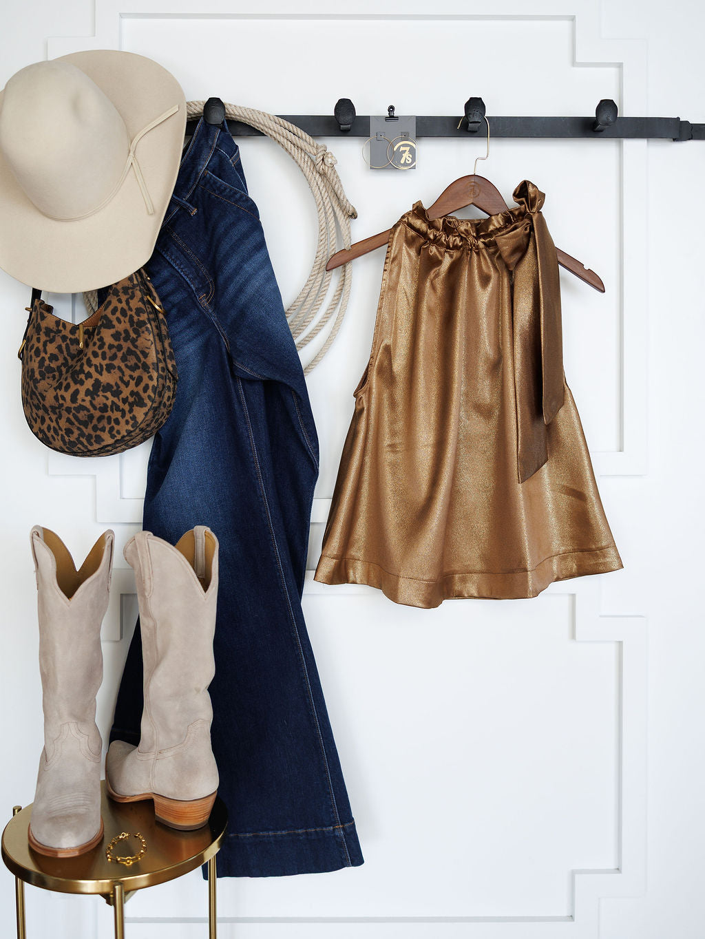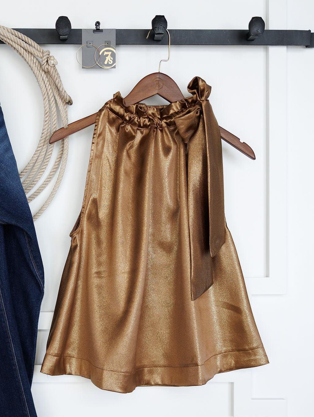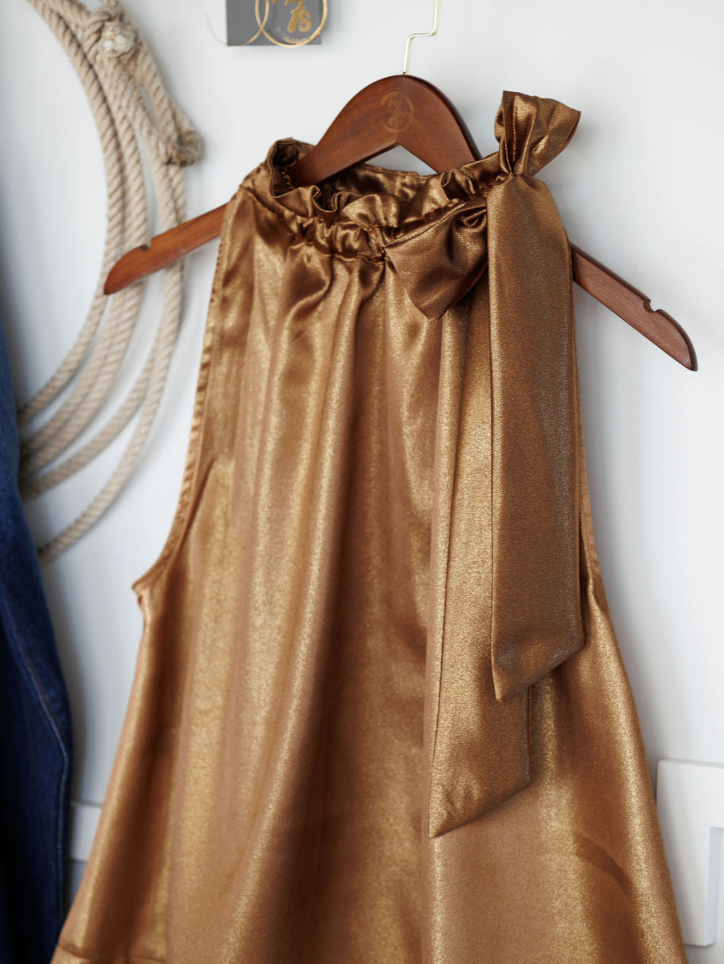 Bronze soft textured satin fabric with woven gold metallic detail.