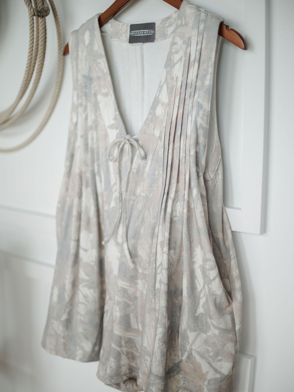 Deep v-neck with tie detail.