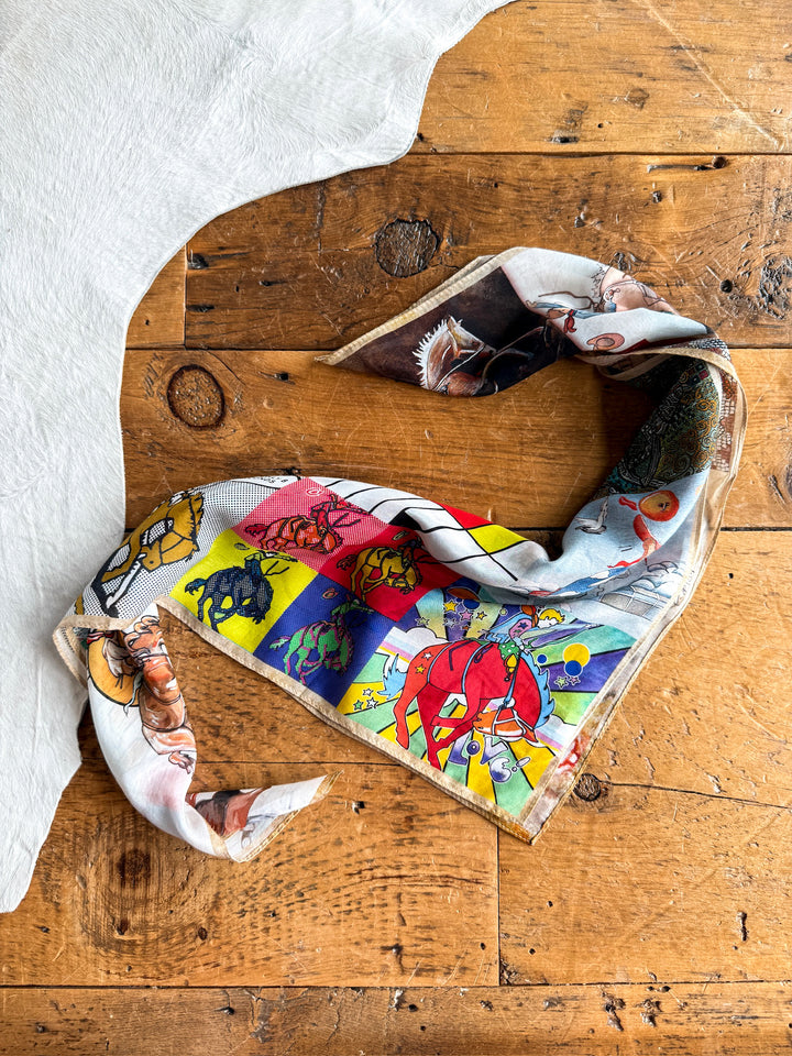 Western hand drawn graphic neck scarf.