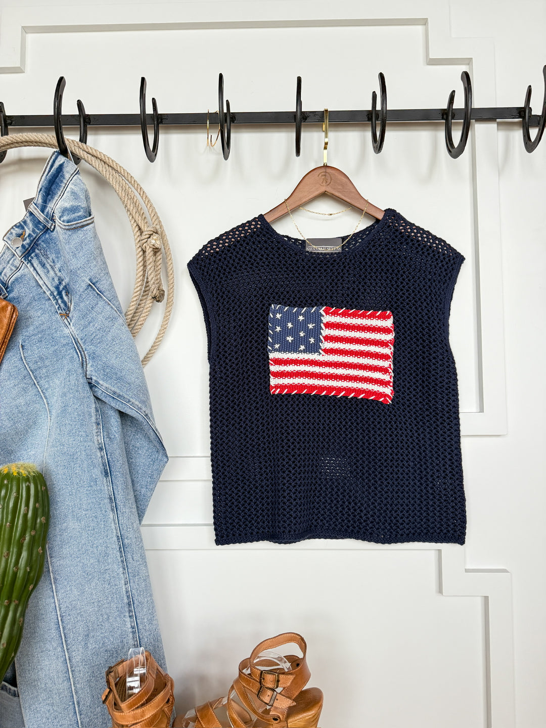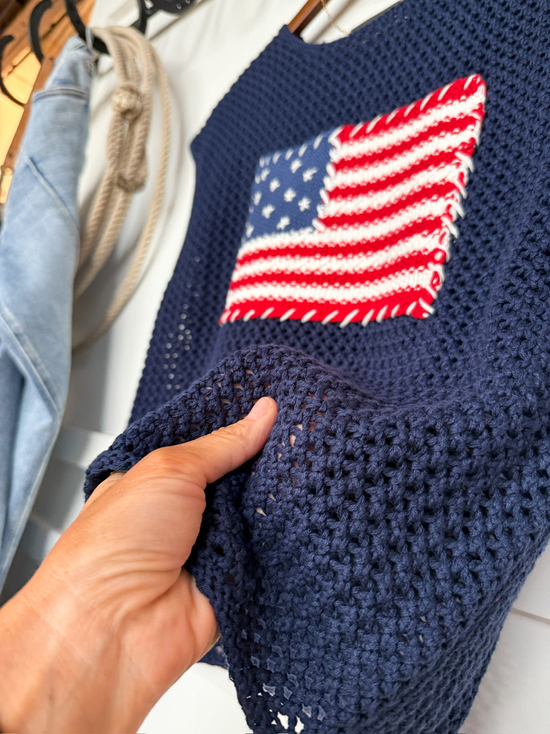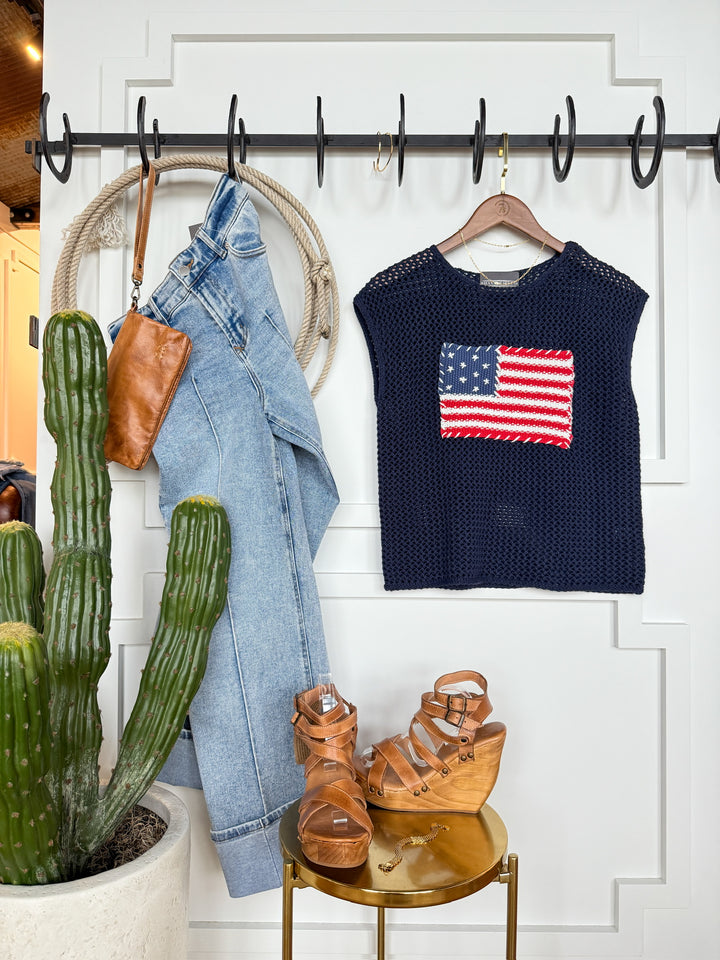 Navy American flag knit sleeveless top.