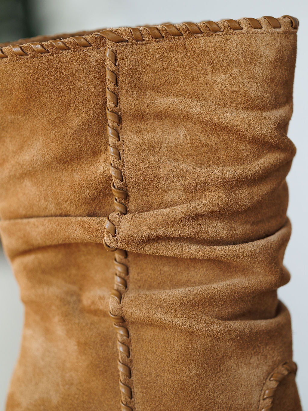Gorgeous faux leather whip stitch detail.
