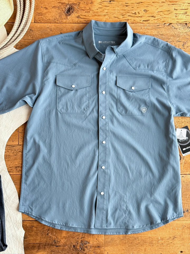 Men's slate blue AriatTek® graphic short sleeve shirt.