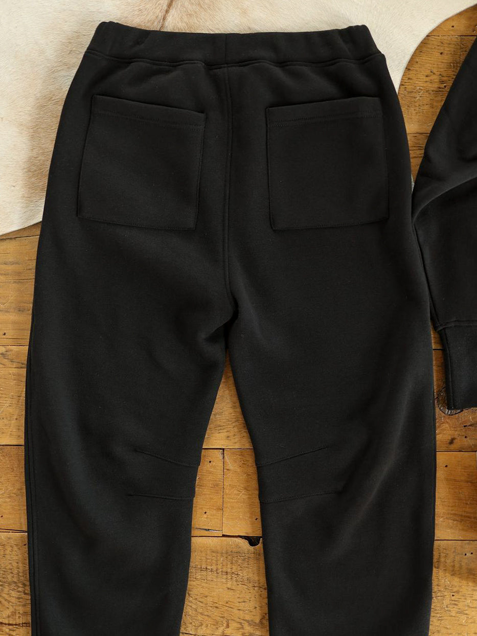 Top is a relaxed fit; pants are a semi relaxed fit.
