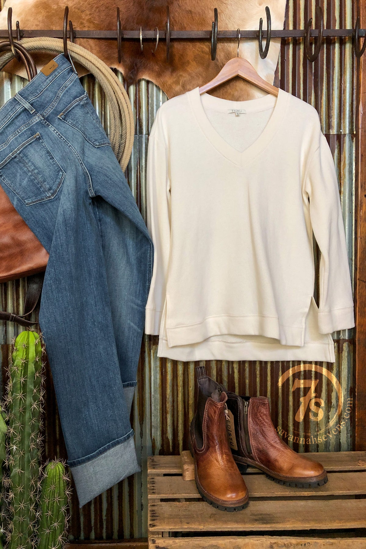 Shown styled with The Yates High Rise Relaxed Straight Leg Jean, The Riggs booties, and Bristol Earrings.