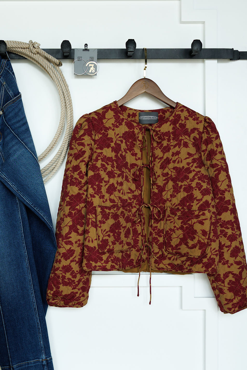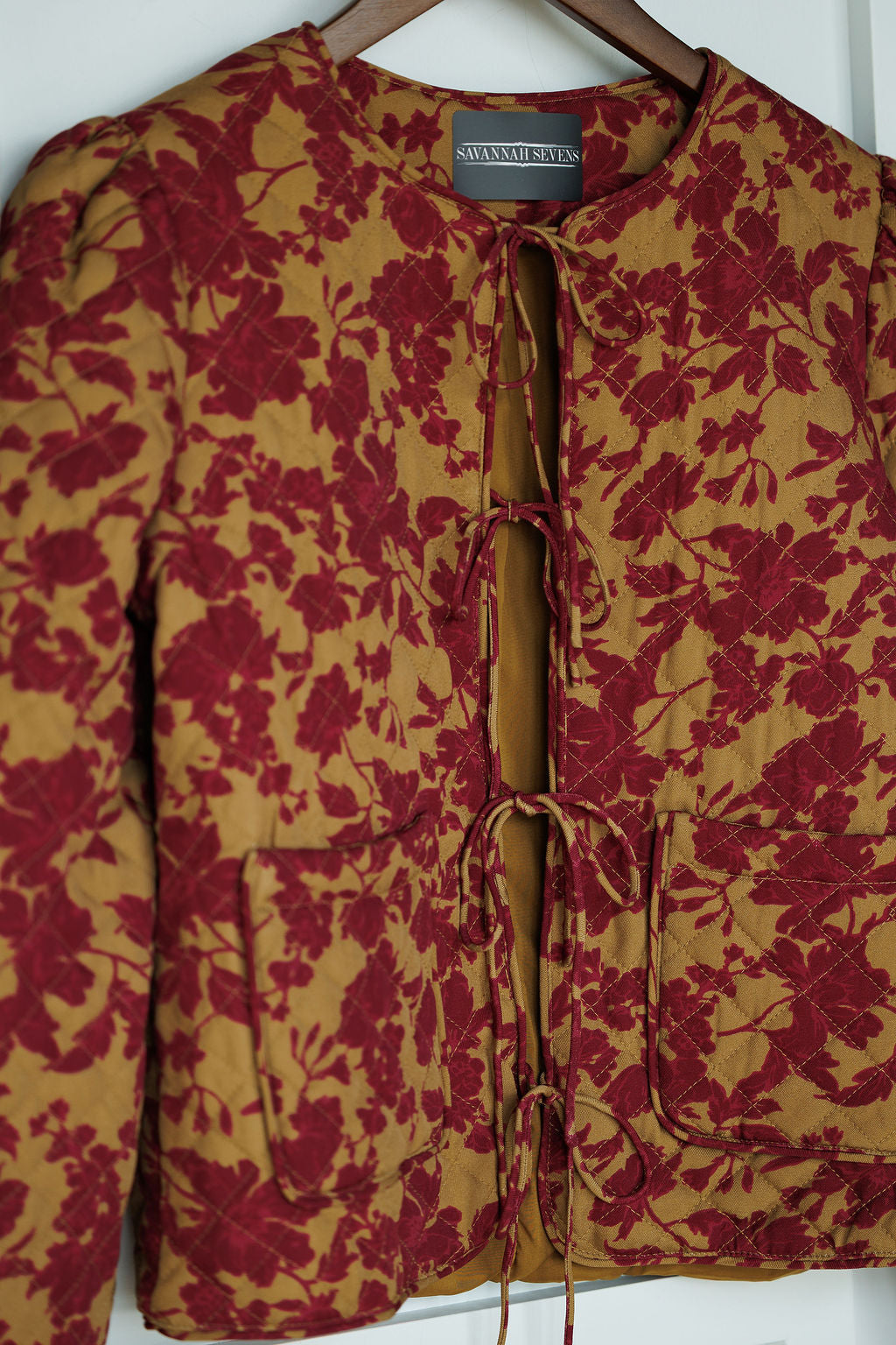 Open front tie quilted floral jacket.