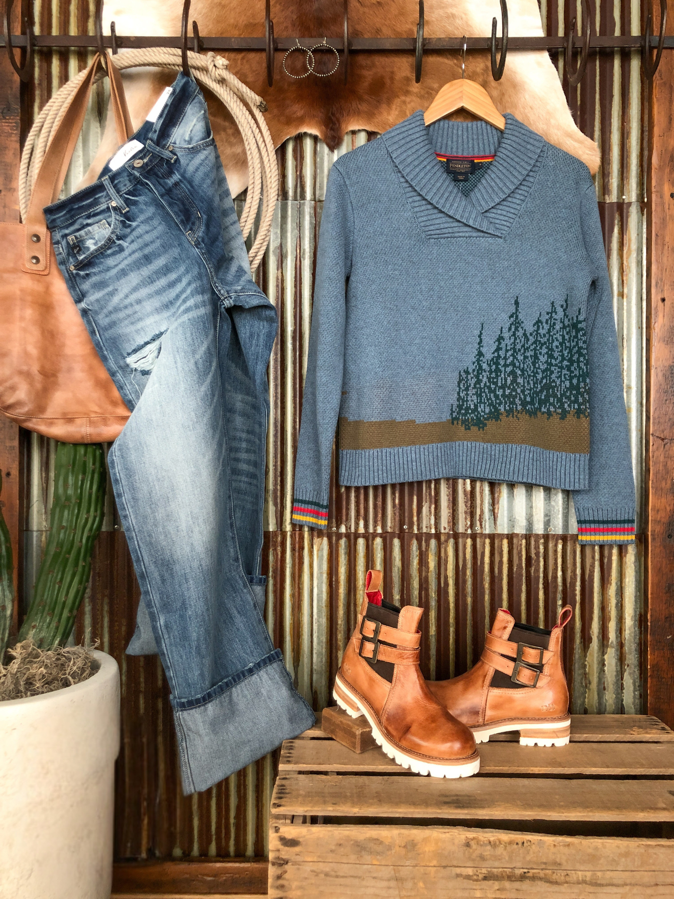 Shown styled with The Trace High Rise 90's Wide Leg Jean, The Kallen booties, The Ocilla *Exclusive* bag, and Lacona Earrings.
