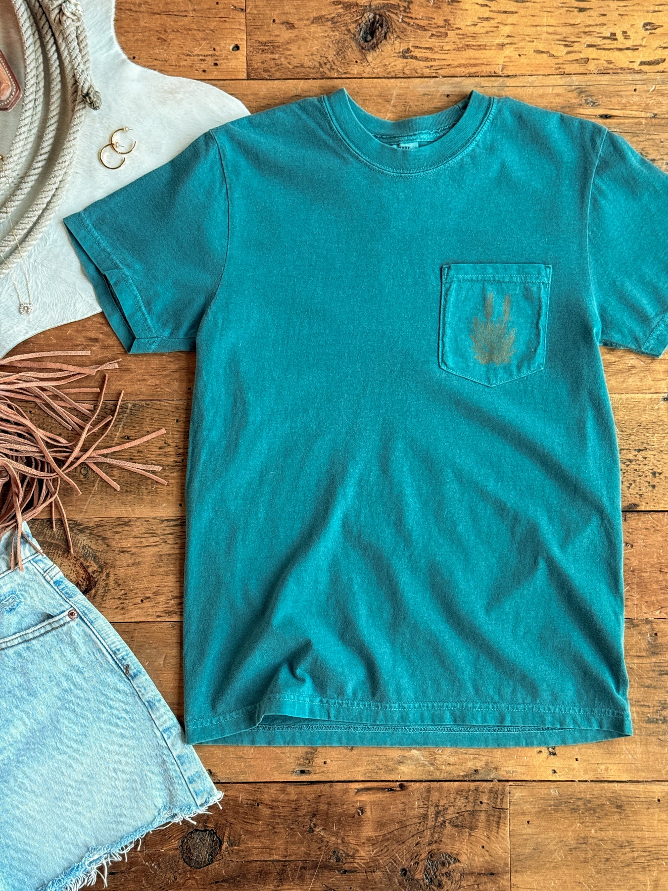 Rust yucca graphic on the open accent pocket and Savannah Sevens back neckline graphic.