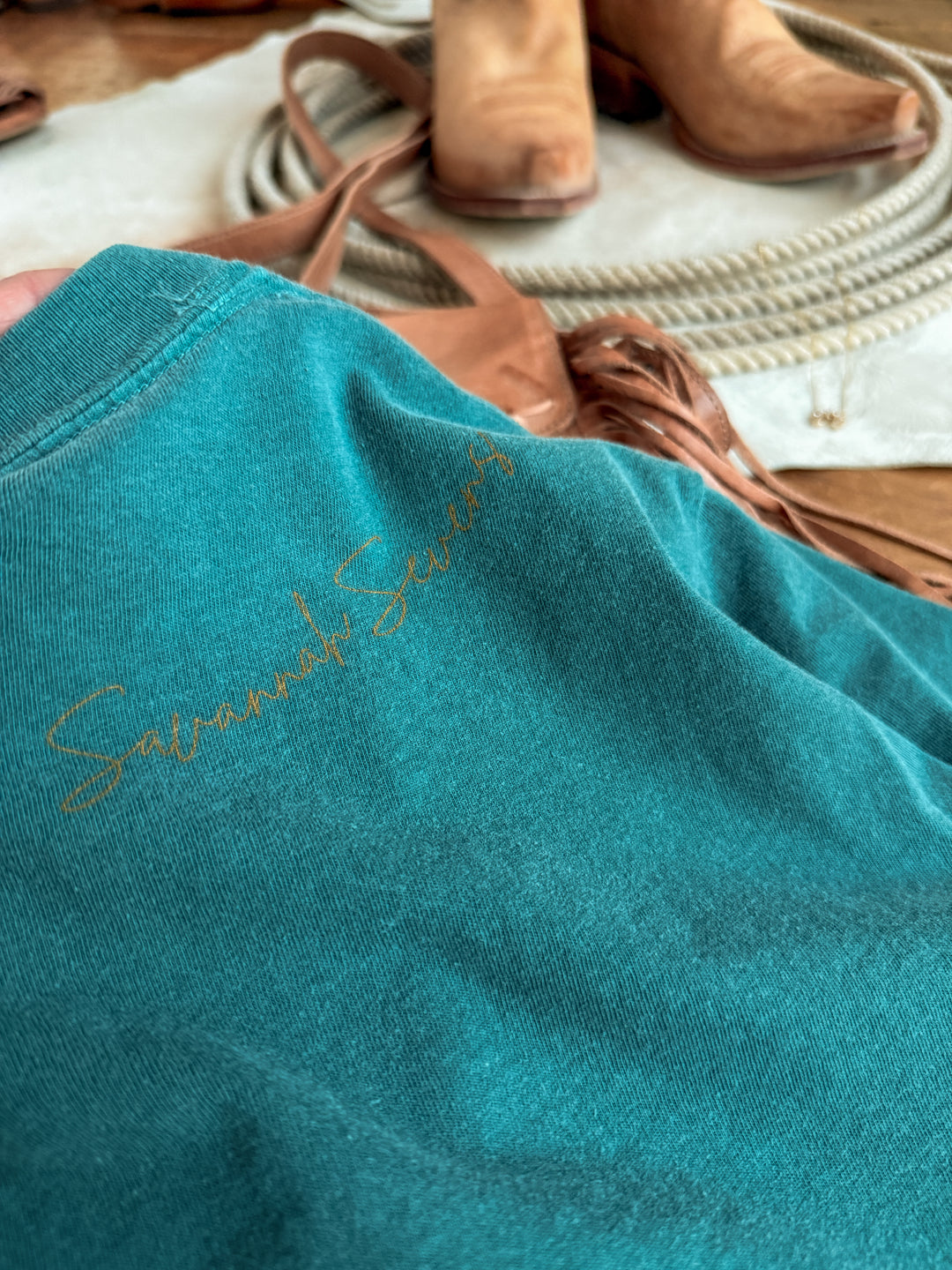Introducing the Custom Savannah 7s emerald graphic tee.